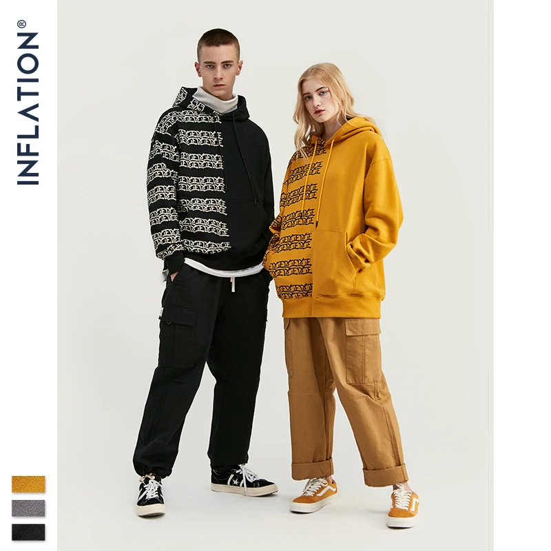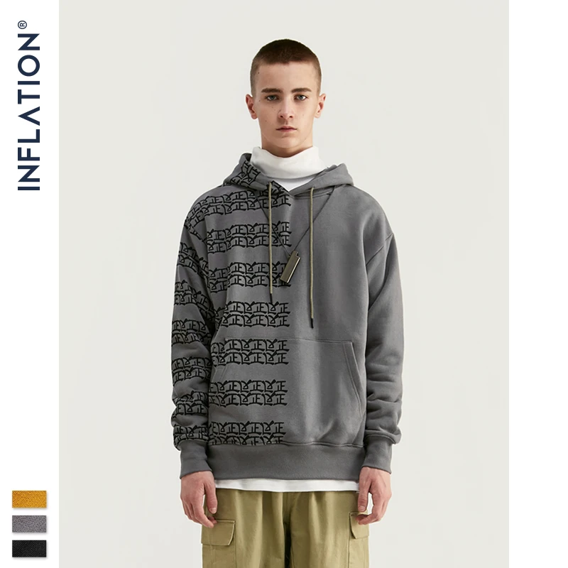 Мужская толстовка с китайским принтом INFLATION Design, свободная толстовка из 100% хлопка с флисовой подкладкой, зима 2020, 9656W