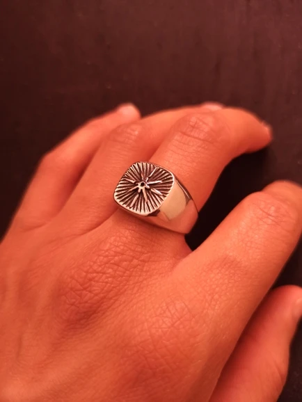 Отлично смотрится на пальце, аккуратное, надеюсь действительно нержавеющая сталь.