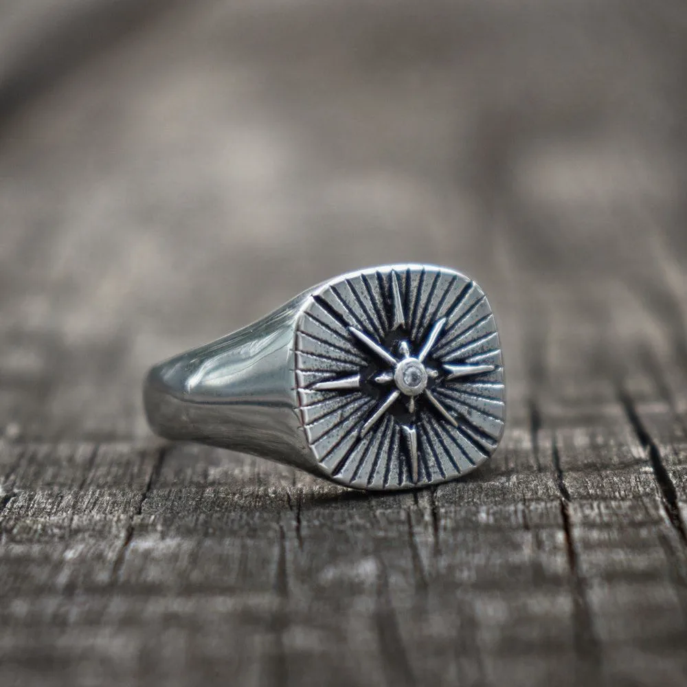 Мужское кольцо-печатка EYHIMD Polaris, из нержавеющей стали с фианитами