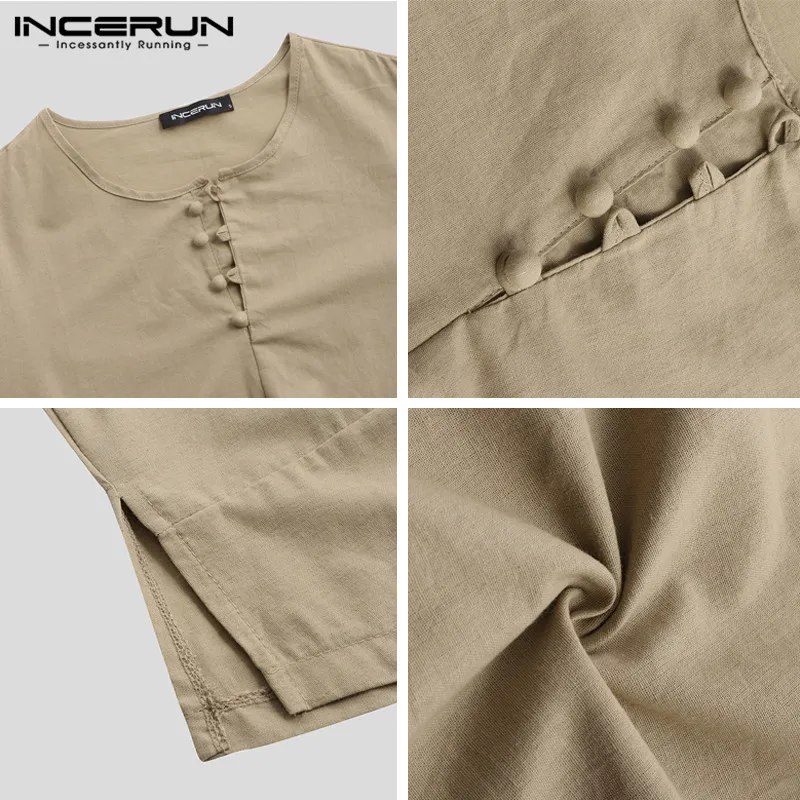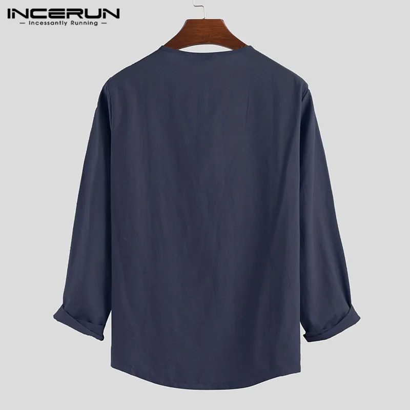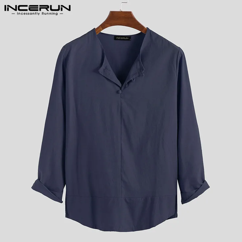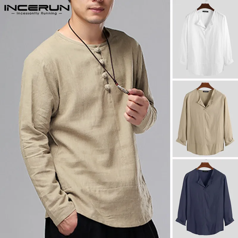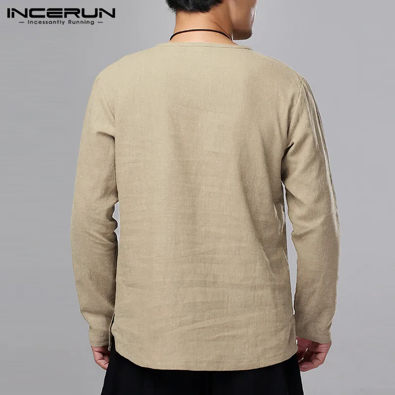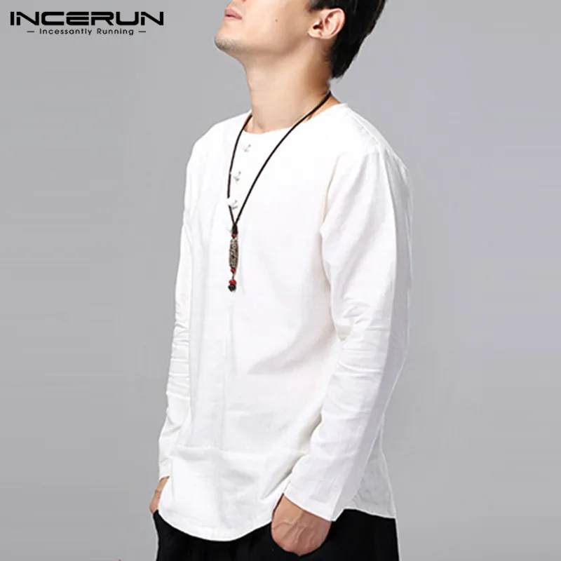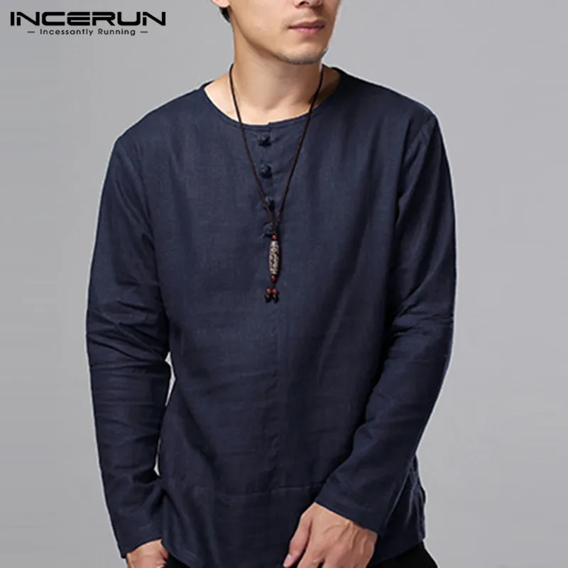 INCERUN винтажная Мужская рубашка с длинным рукавом из хлопка уличная пуговица кунг-фу Однотонная рубашка в китайском стиле Camisa мужская Повседневная рубашка 2020