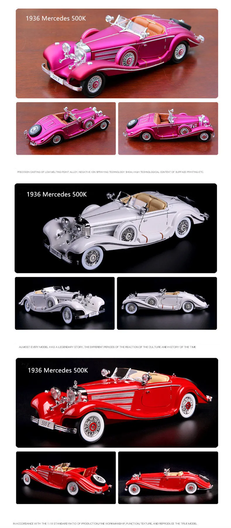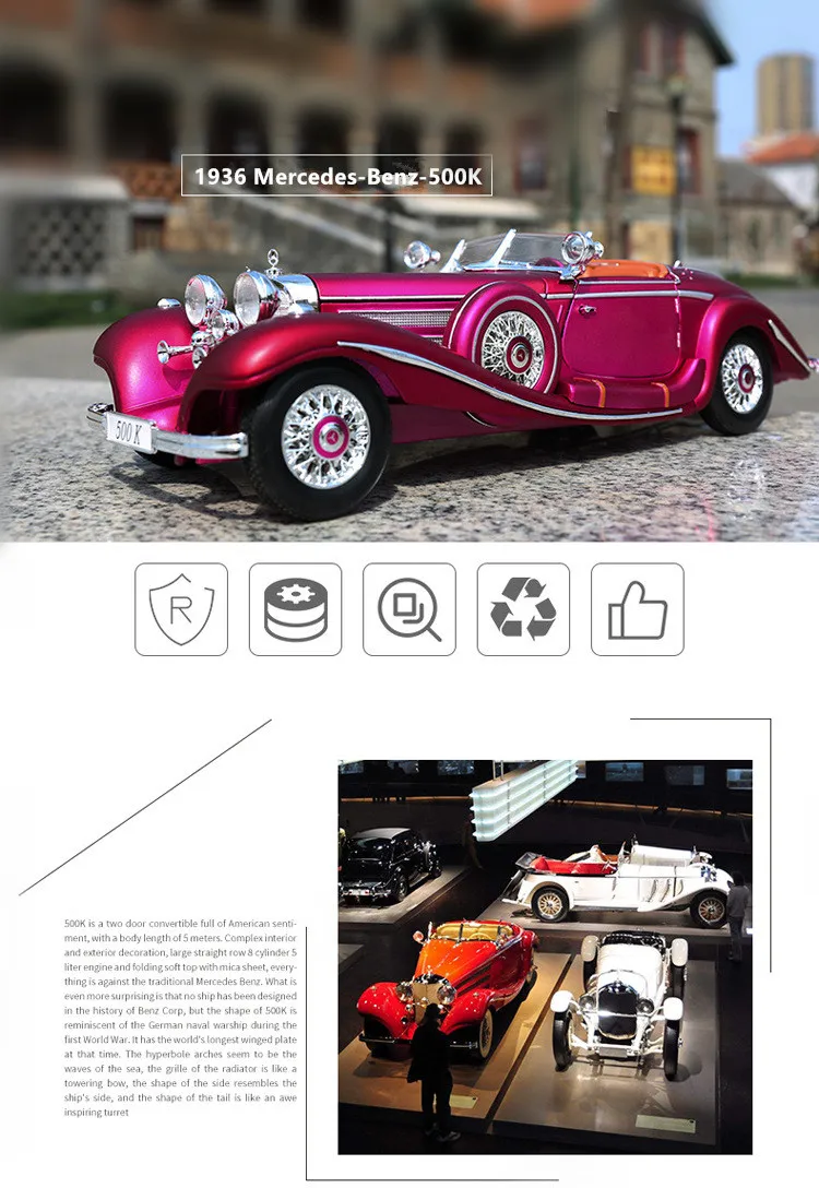 Модель автомобиля Maisto 1:18 Mercedes 500k, из сплава, модель автомобиля, декоративная коллекция, Подарочная игрушка, литье под давлением, модель игрушка для мальчиков