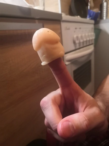 Быстрая доставка, хорошо упакован, выглядит как на фотографиях, товар выбран, на кончике пальца небольшое отверстие, также производит небольшой запах, высота около 4 см, качество хорошее ..