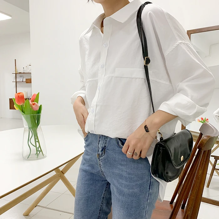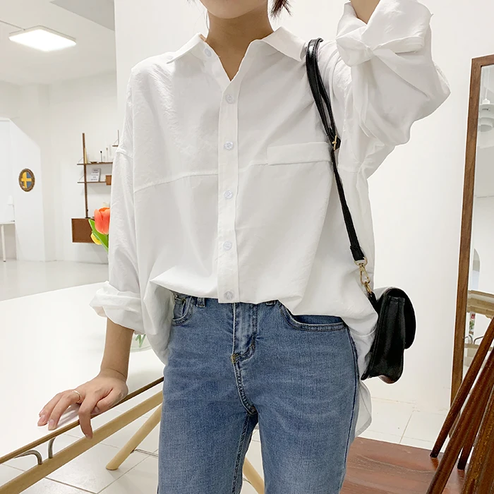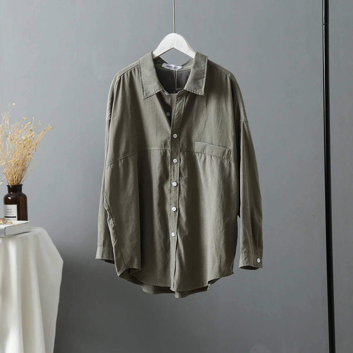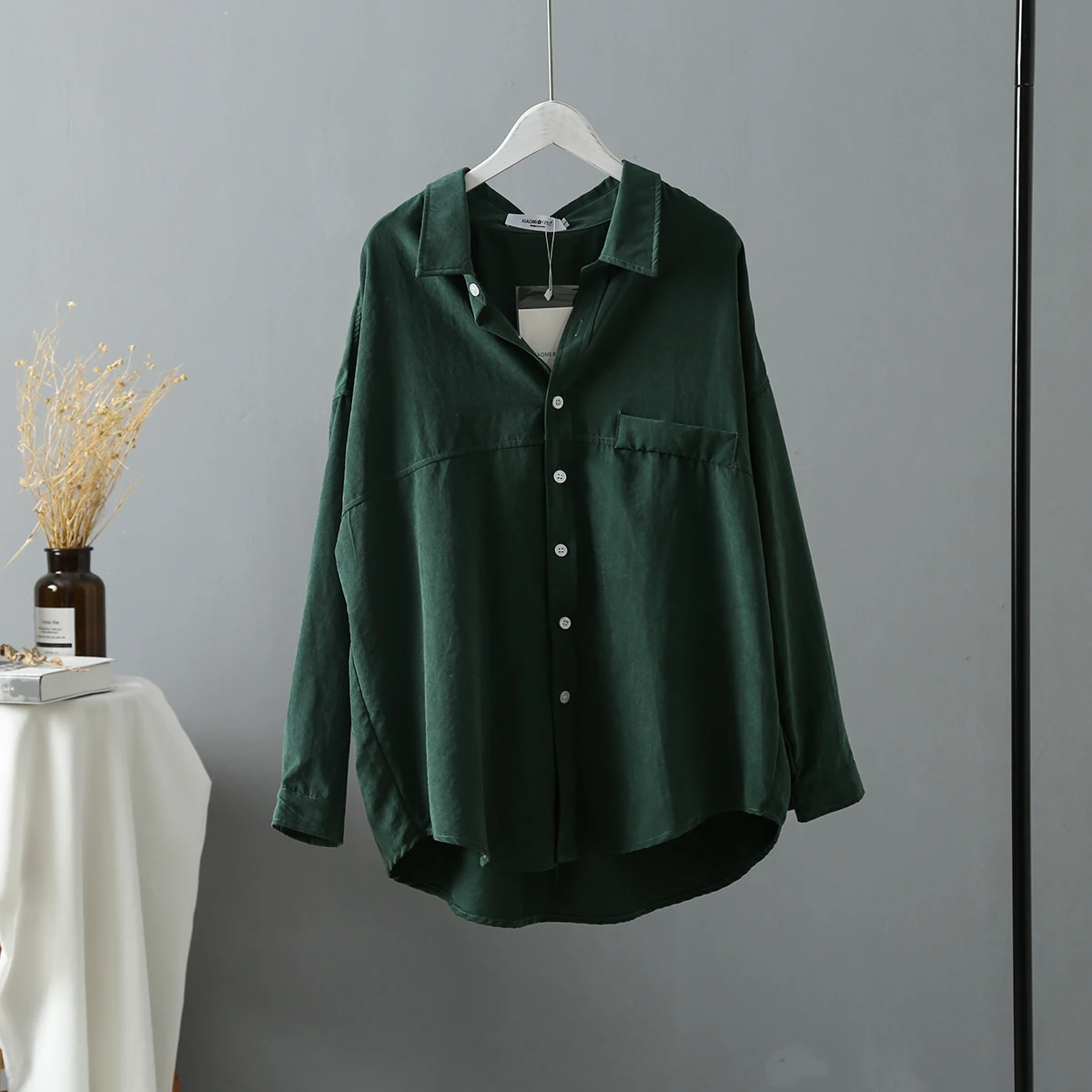 Сезон весна-осень; Новинка; Модные свободные однотонные женские рубашки Blusas Mujer De Moda 2021 темно-зеленого цвета с длинным рукавом, женские блузы, топы, 6720 50