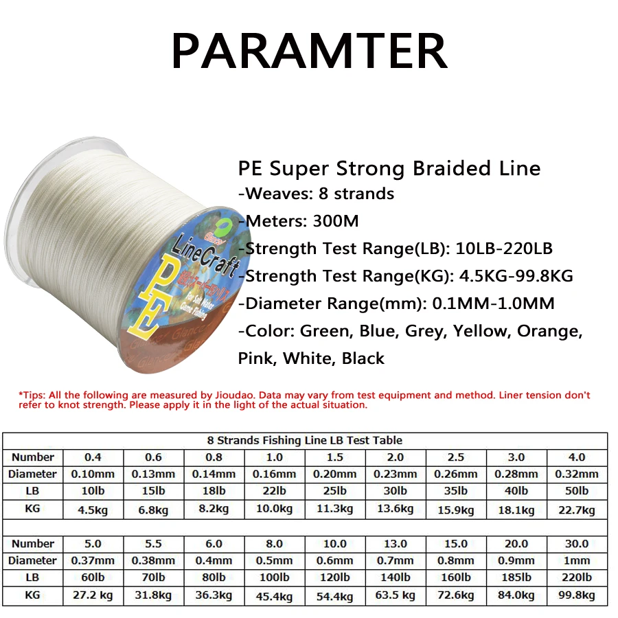 Номер лески 6,0 # : 80LB-0.40MM-36.3KG, означает, что сила 80lb (36,3 кг), а диаметр составляет 0,4 мм.