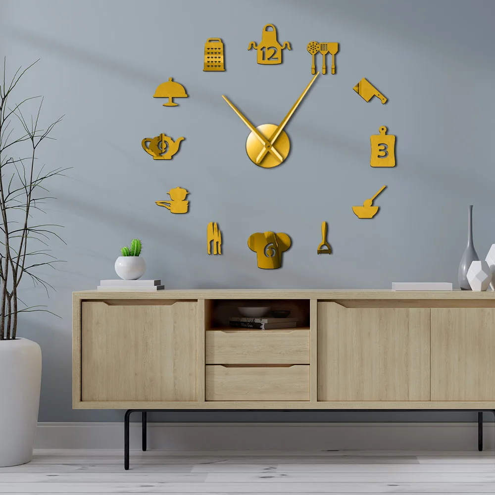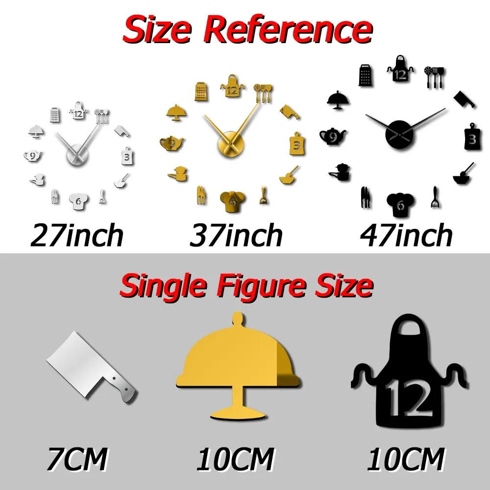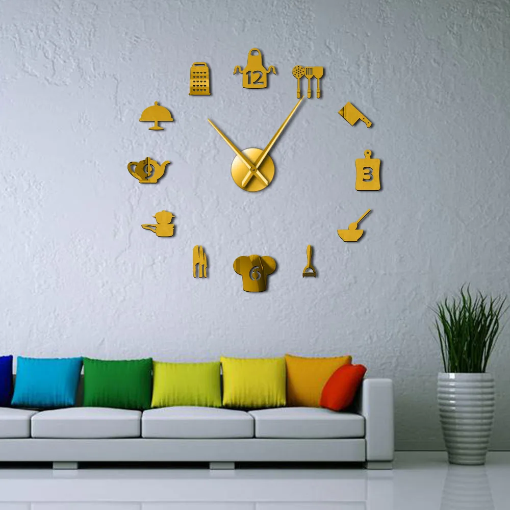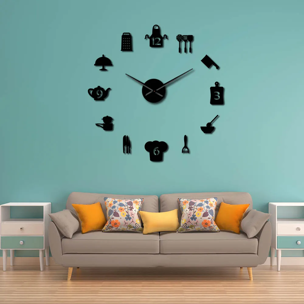Кухня Инструменты для приготовления пищи, поделки гигантские настенные часы бескаркасные большие часы большие кухонные настенные наклейки Horologe декоративный дизайн для дома