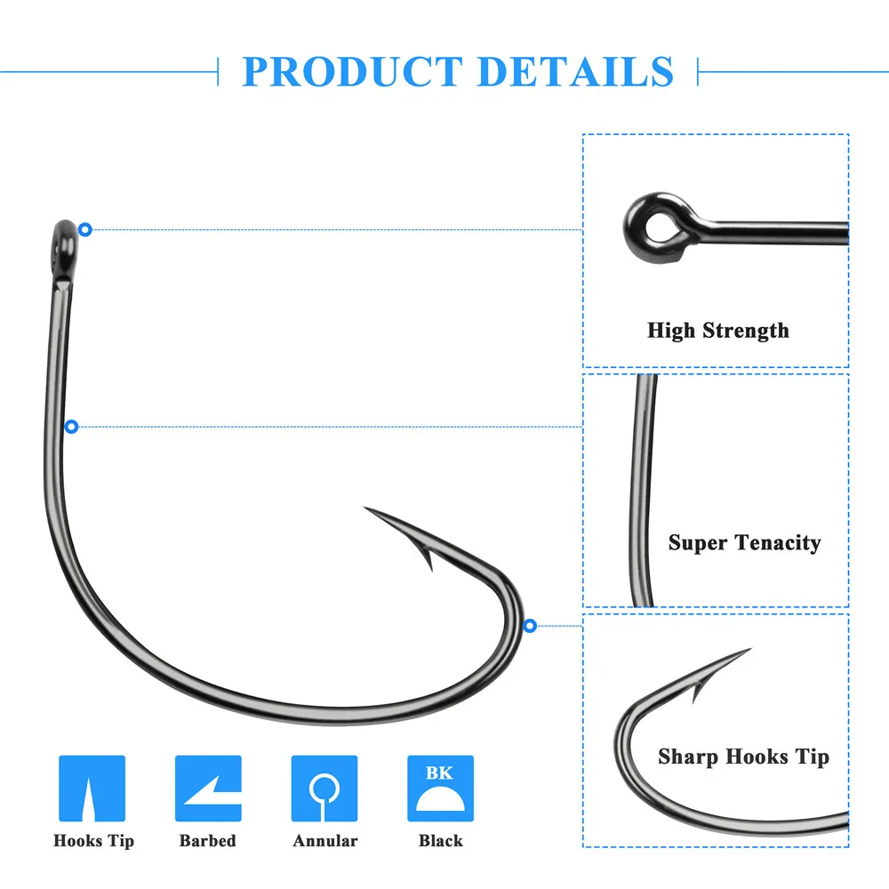 200 шт. офсетный колючий удушливый рыболовный крючок из высокоуглеродистой стали, черный басовый удушливый Рыболовный набор, Техасские снасти, рыболовный крючок
