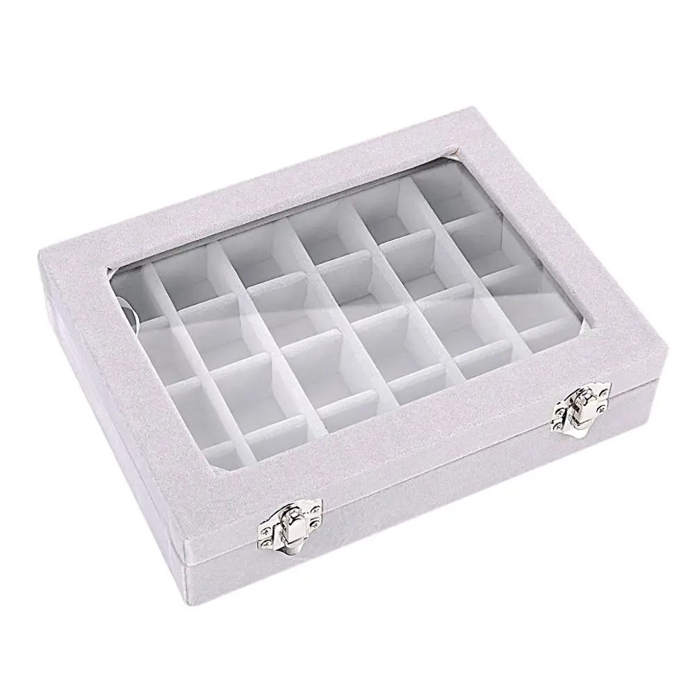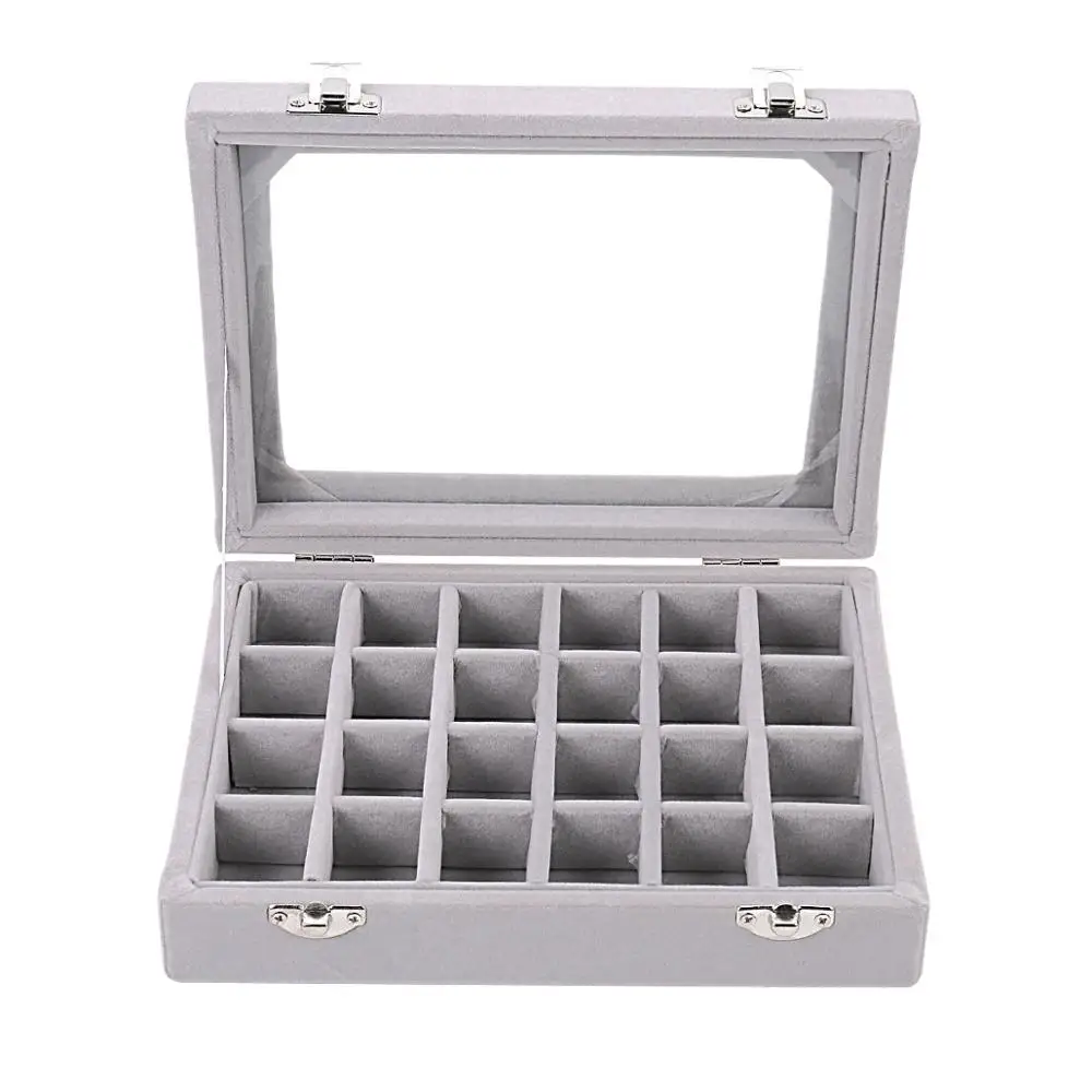 Бархатный Чехол для хранения сережек, 24 ячейки и 7 ячеек, органайзер для колец, органайзер для украшений, прозрачный стеклянный чехол, серый