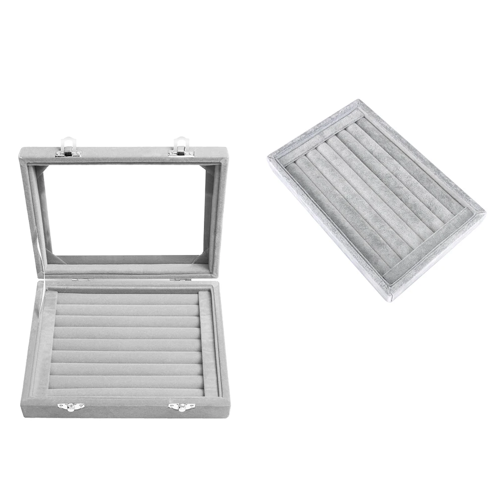 24 секции 7 слотов бархатное стекло Кольцо Дисплей коробка держатель ювелирных изделий Органайзер чехол для хранения серьги лоток браслет чехол для шоу