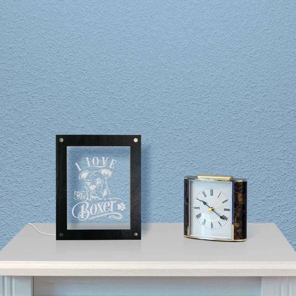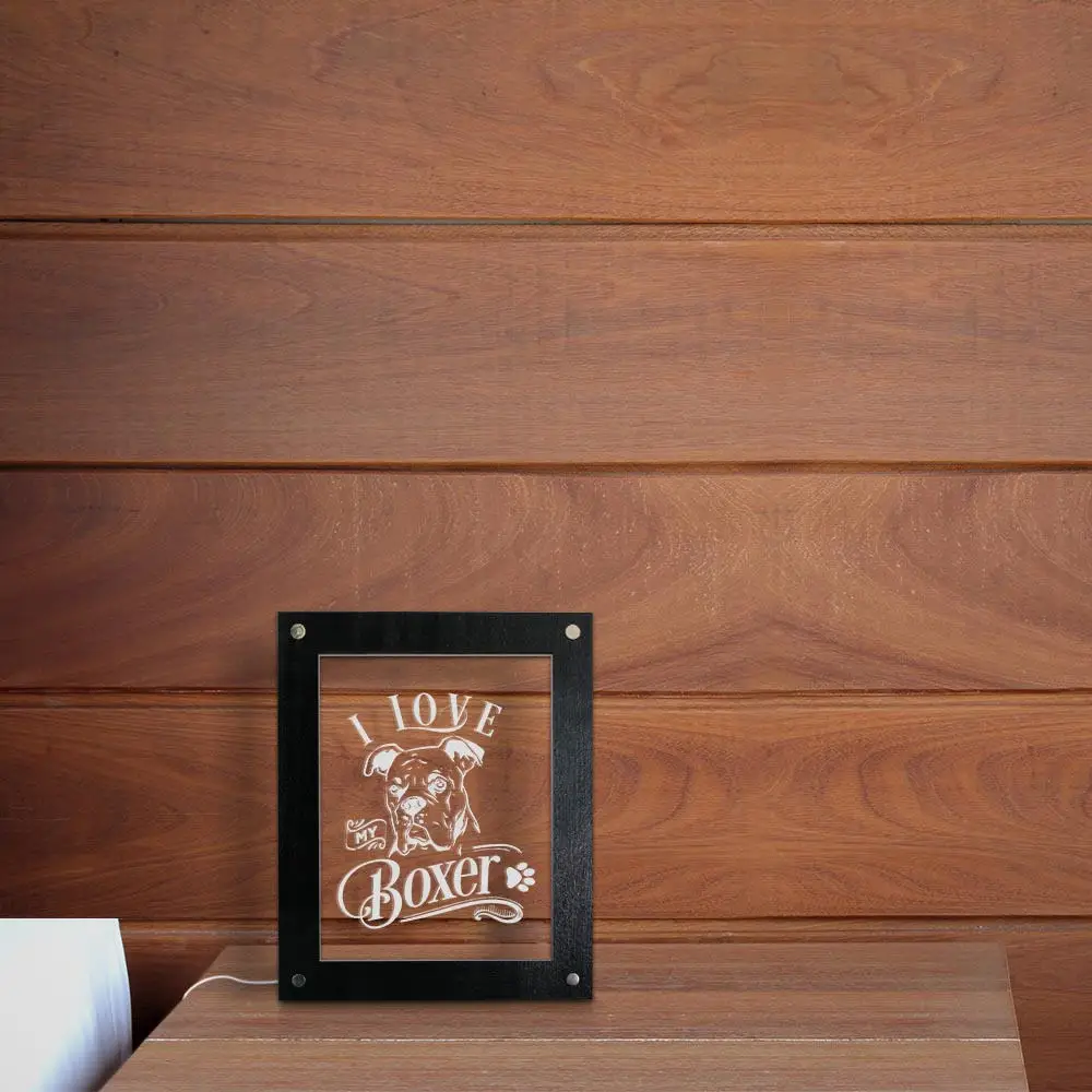 Декоративное освещение I Love My Boxer, ночник, фоторамка, боксеры, питомцы, щенки, собака, любовник, подарок, настольная лампа, успокаивающий ночник