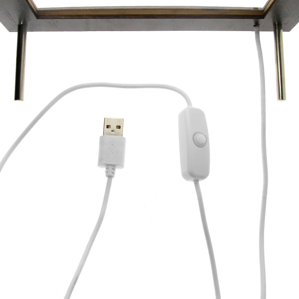 Размеры: 23,5 см (H) x 19 см (W) Легкий Переключатель ВКЛ/ВЫКЛ Светодиодный энергосбережения светильник Светильник; Цвет: теплый Длина usb-кабеля: 120 см Материалы: деревянная рама + акриловая вставка + металлическая задняя подставка Простое подключение USB к ПК или адаптеру. (Адаптер не входит в комплект)