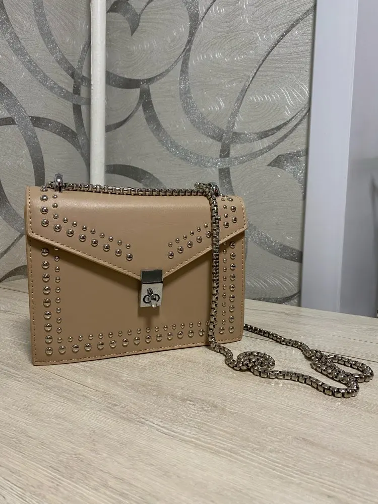 Сумка очень маленькая! На фото продавца и отзывов смотрится как-то больше...мои проблемы, что по линейке не посмотрела, как она будет выглядеть вживую. Качество хорошее, смотрится дорого. Цвет универсальный, металлич.украшения не дешевят её.