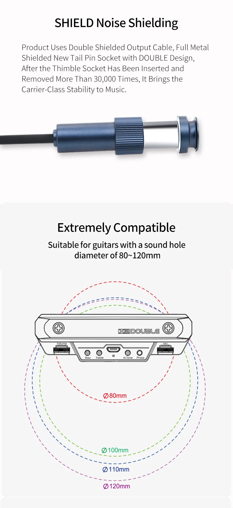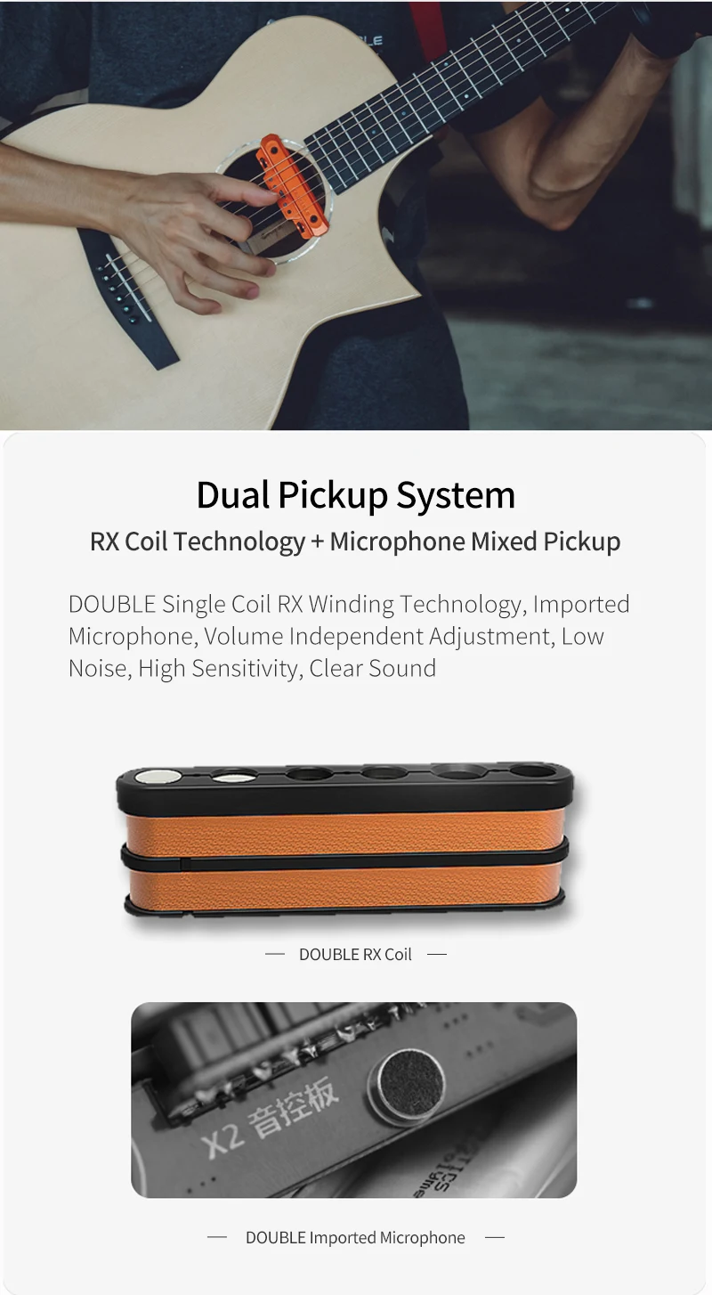 Двойная Акустическая гитара X0 система Preamp Избегайте открытия встроенной литиевой батареи для 39-42 дюймовых гитарных аксессуаров