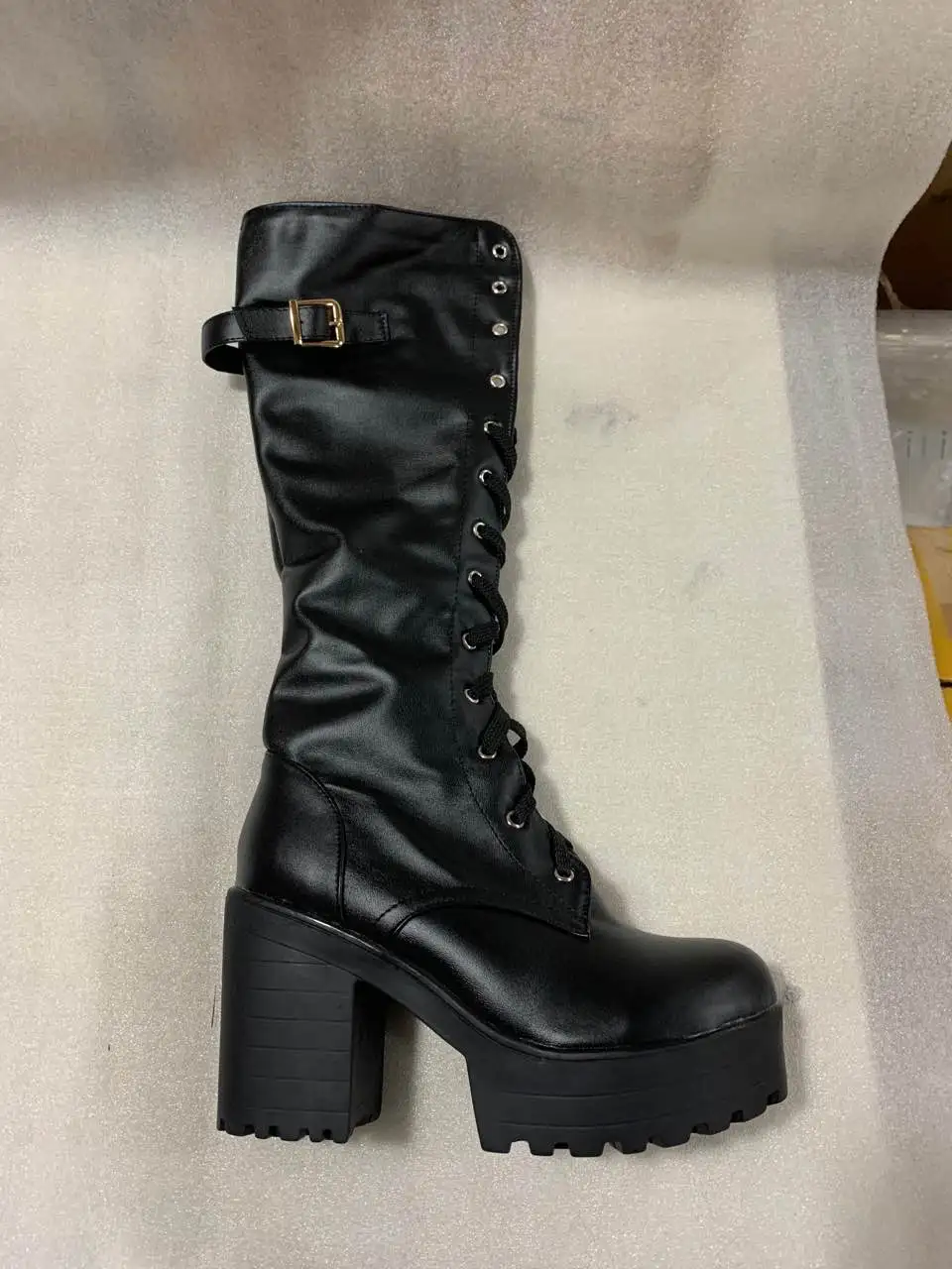 DORATASIAНовинка 2019, женские сапоги до середины икры со шнуровкой, большие размеры 34-43, женская обувь для свидания на высоком массивном каблуке,