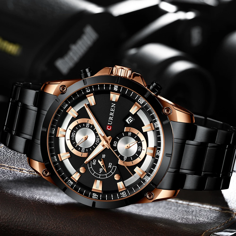 CURREN Мужские часы Топ бренд класса люкс Спортивные кварцевые мужские часы полностью стальные водонепроницаемые наручные часы с хронографом для мужчин Relogio Masculino