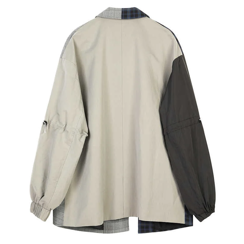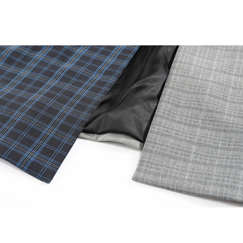 EAM женский синий ассиметричный блейзер в клетку большого размера, новая свободная куртка с отворотом и длинным рукавом, модная демисезонная 2022 1B4690