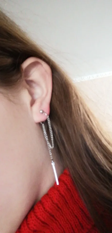 Серёжки супер, пришли за месяц, кинули в почтовый ящик. Смотрятся очень круто, заказывала на вторую дырку в ухе, безумно довольна, всем советую!