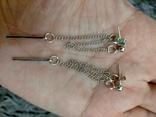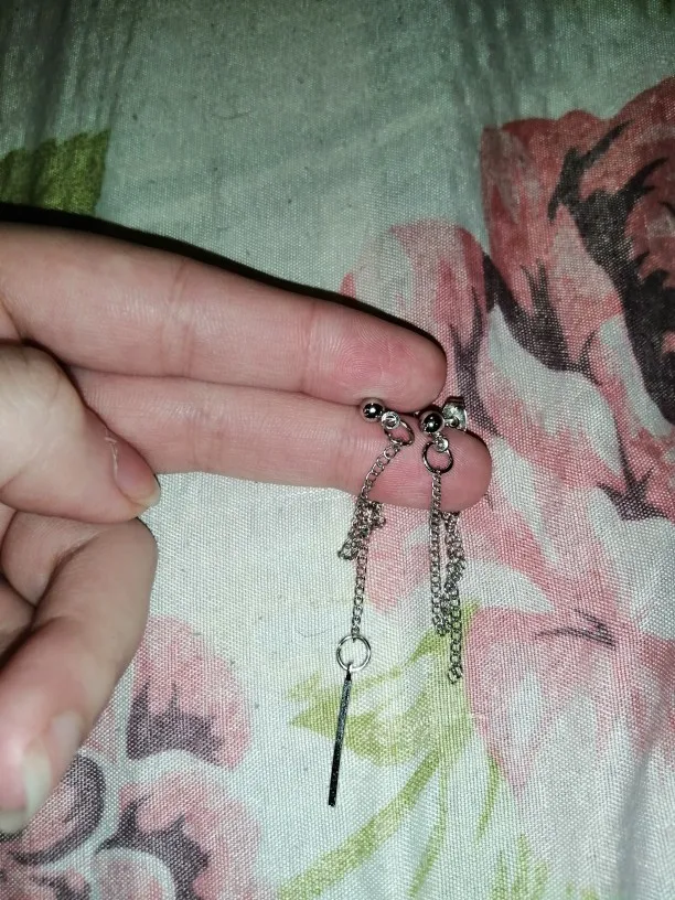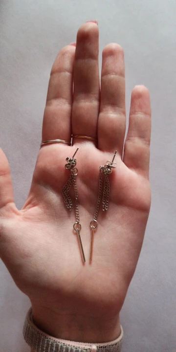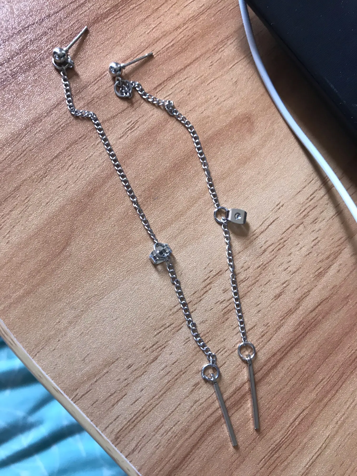 Серёжки очень удобные, смотрятся классно, но мой совет, перед тем как надеть, убедитесь что все крепления, цепочки между собой, держаться и закреплены хорошо. Надела на три часа, не заметила, что плохо закреплены, и один прямоугольник отпал, расстроилась немного. В остальном всё супер. Шли месяц.