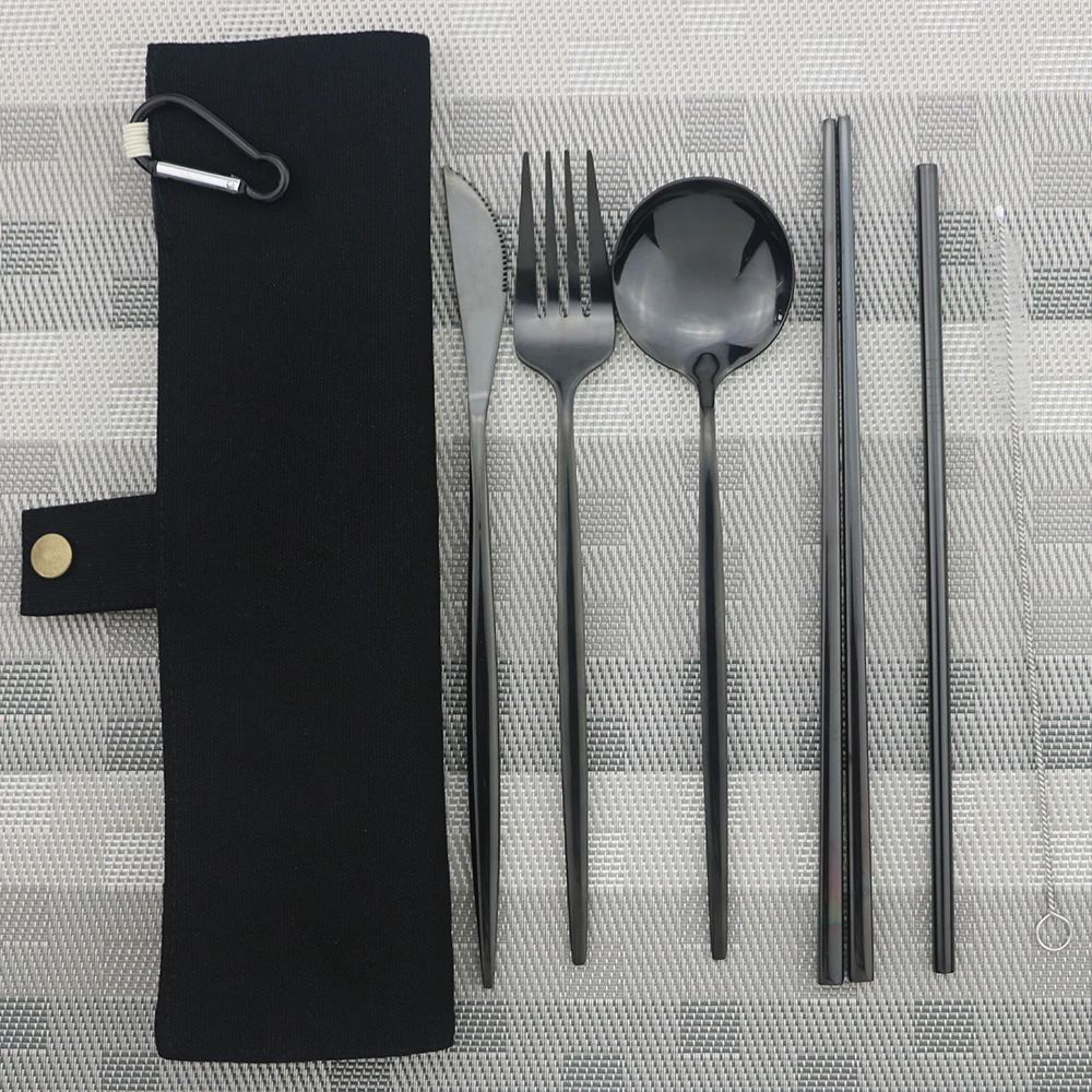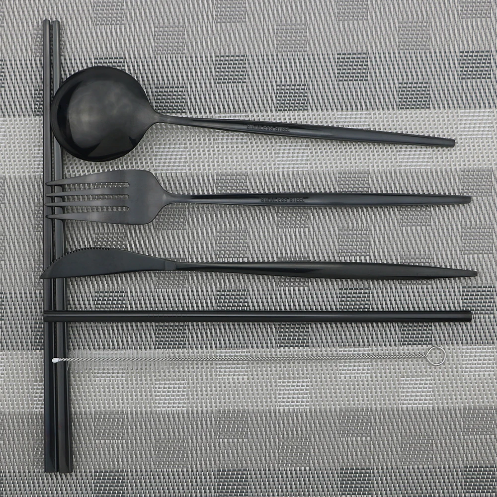 Набор столовых приборов из нержавеющей стали, с золотым ножом, вилка, ложка, черный цвет, для путешествий, пикника, офиса, барбекю