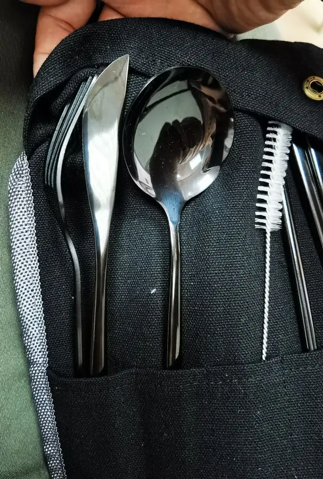 Отличный набор! Всё как в описании, чехол из гпубой ткани, держится всё плотно, столовые приборы хорошего качества, не гнутые, краска равномерная (посмотрим как поведет себя при использовании). Доставка 2 недели до Мск.