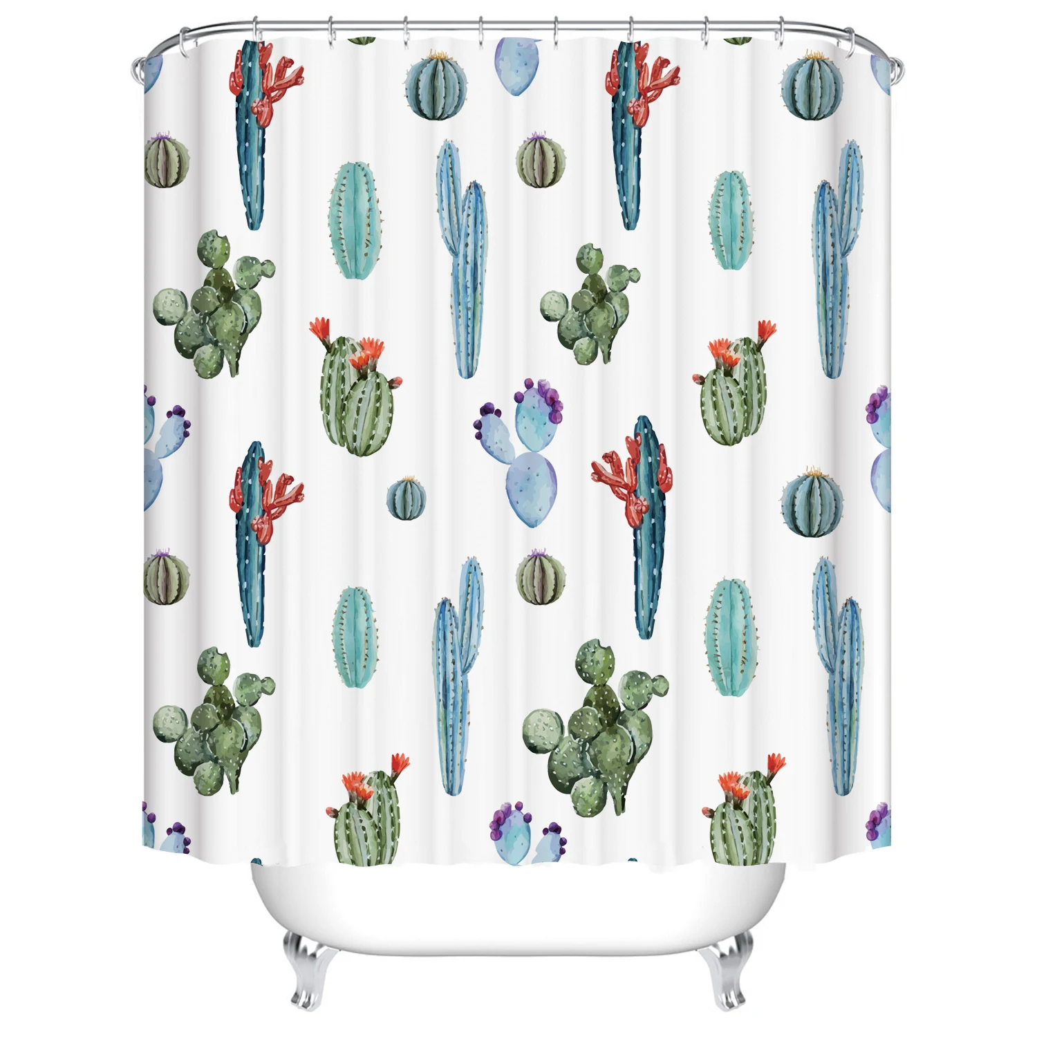 Занавеска для душа, тропический кактус, альпака, набор из 12 крючко...