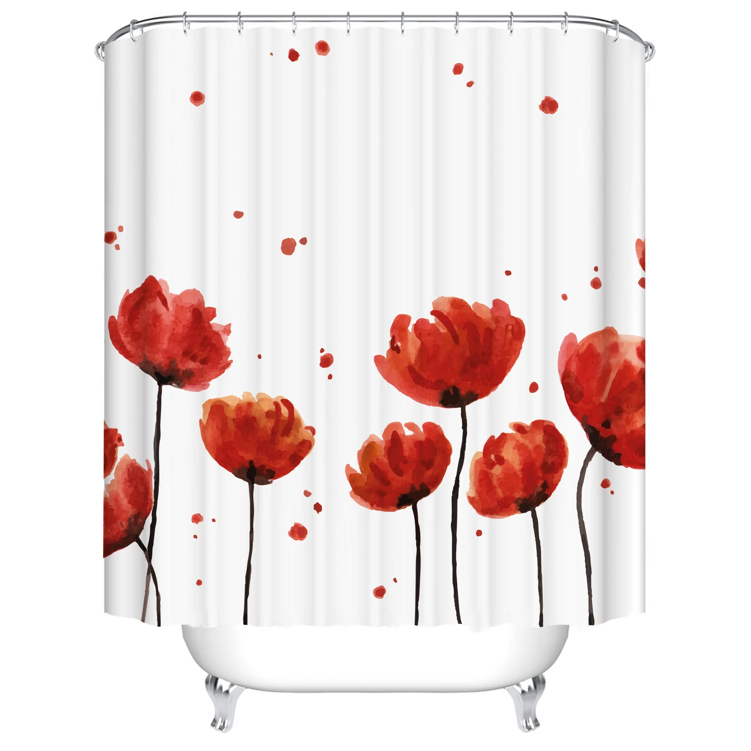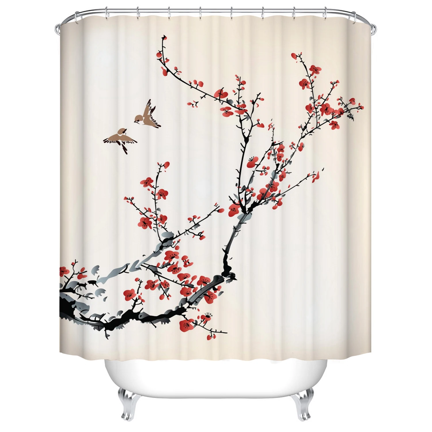 Занавеска для душа в японском стиле с цветами вишни, красная роза, ...