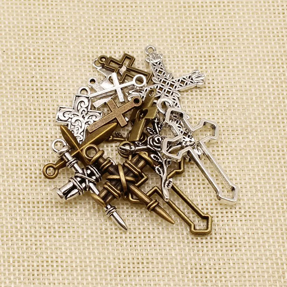 Бронзовый, серебристый цвет для изготовления ювелирных изделий 20 шт., металлические подвеска в форме Креста с покрытием, принадлежности для ювелирных изделий