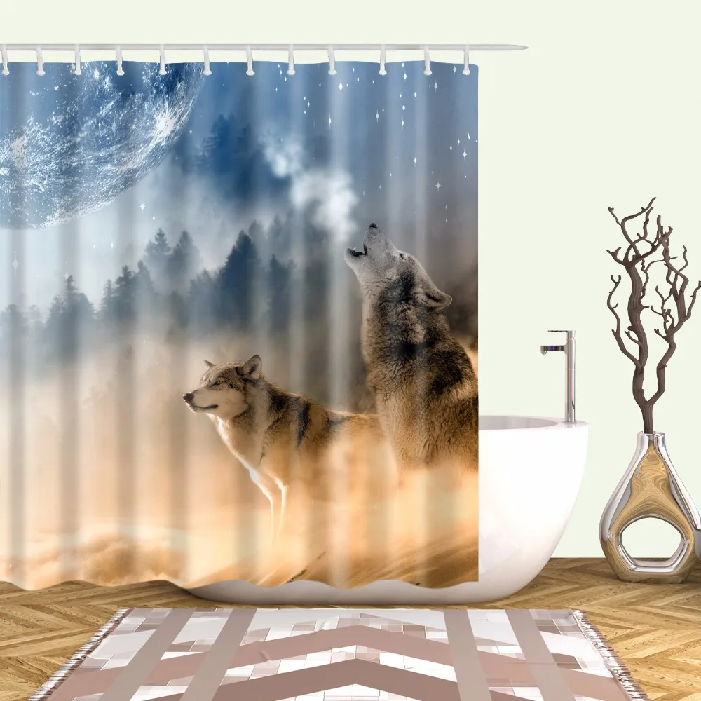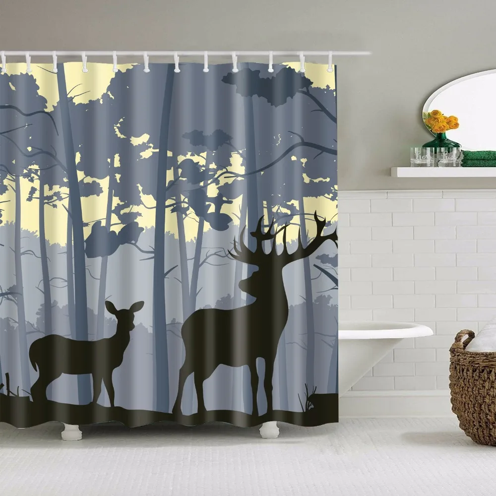 Занавеска для ванной с животными, оленем, рыбой, кошкой, водонепрон...