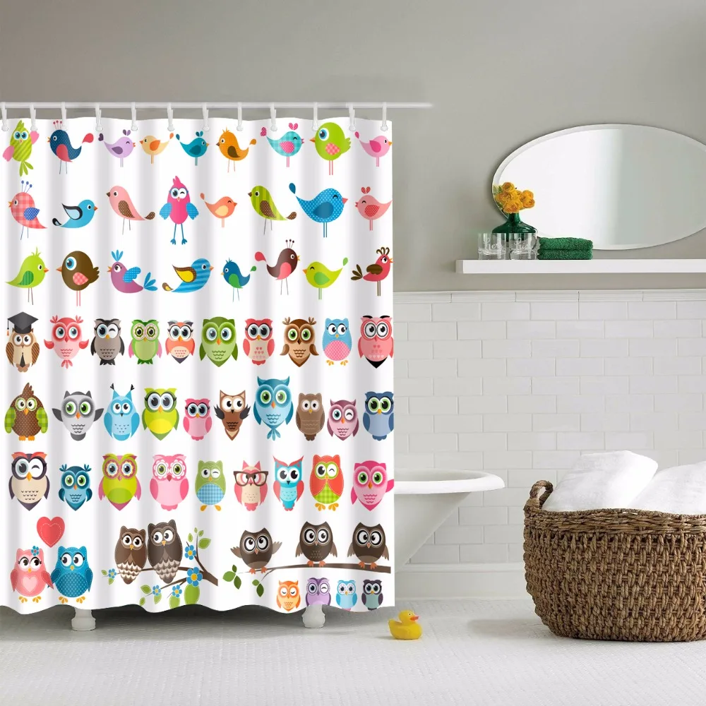 Занавеска для душа в нордическом стиле с животными, павлином, совой...