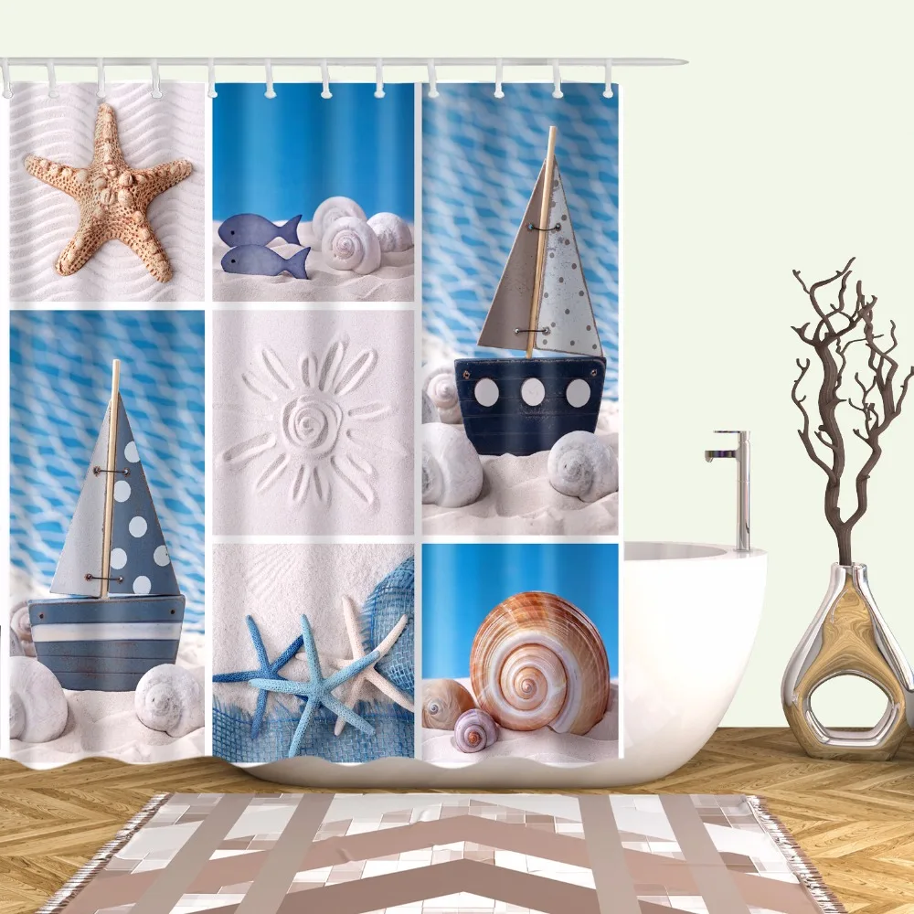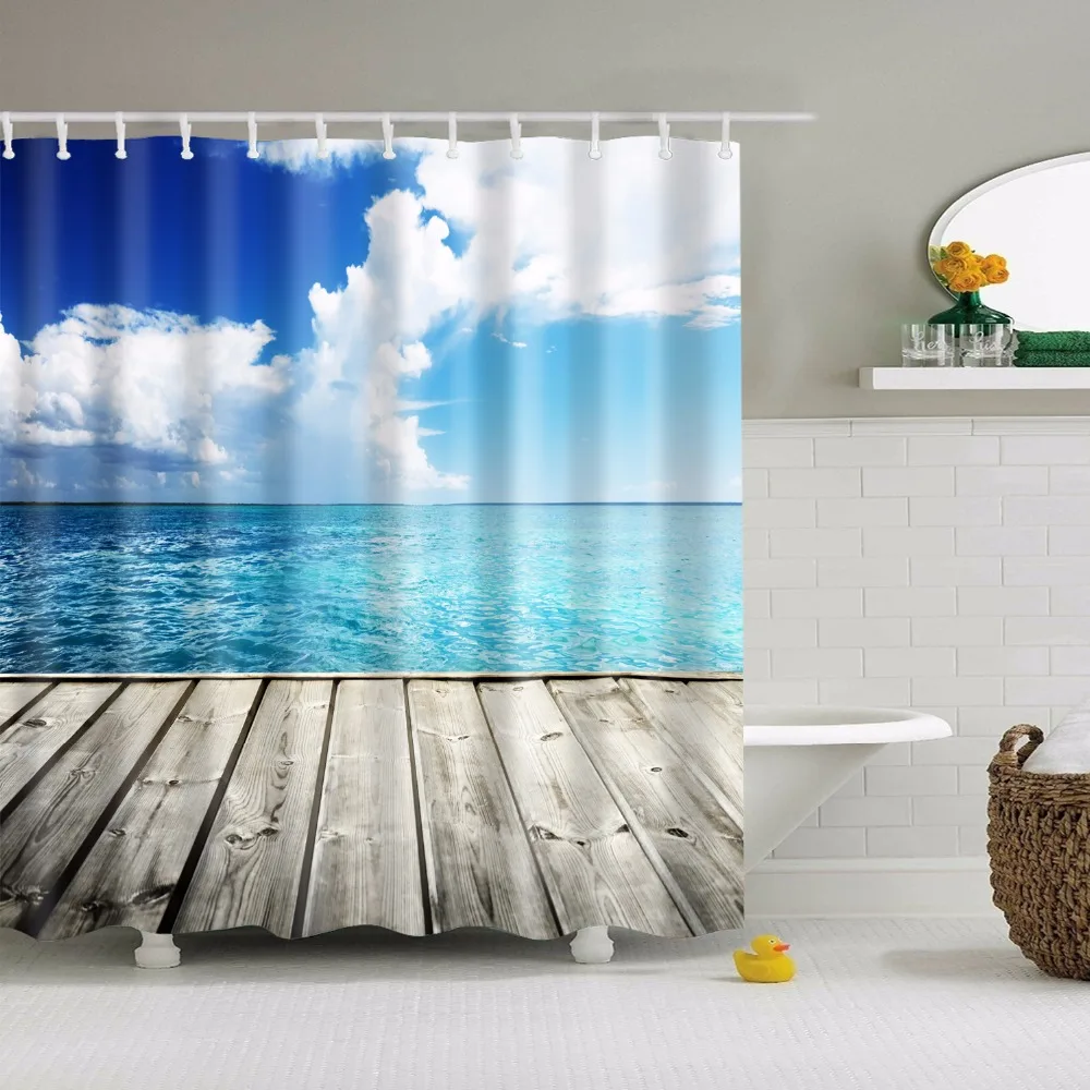 Морской живописный пляжная шторка для душа с принтом s, занавеска для ванной, Frabic, водонепроницаемый полиэстер для ванной комнаты с крючками