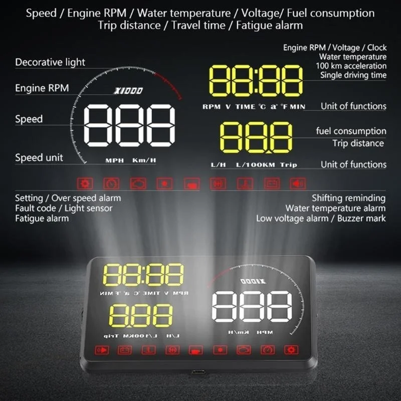 OBD2 автомобильный Hud Дисплей Измеритель Скорости 5,5 "HD светодио...