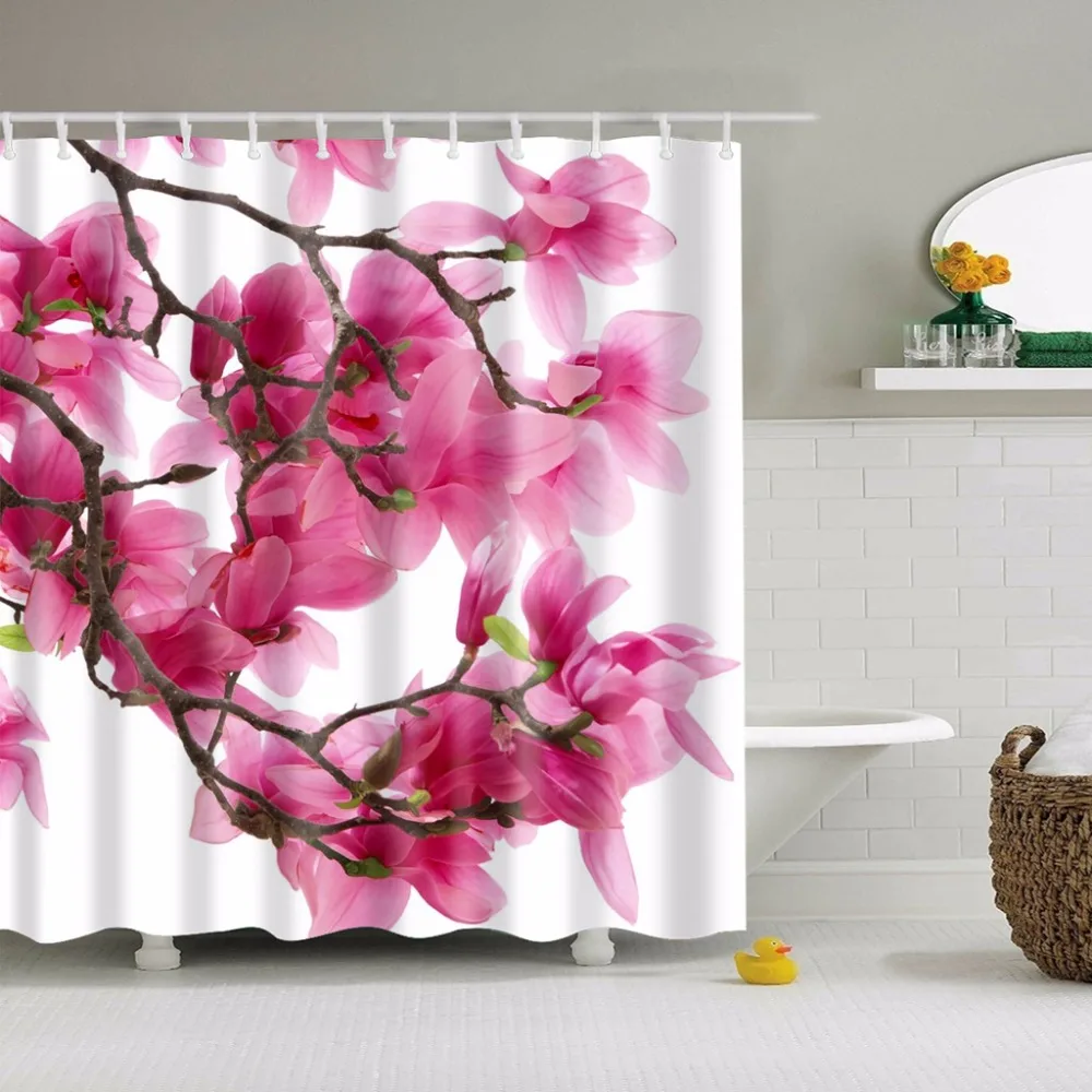 Занавеска для душа, водонепроницаемая, с цветами, розовая, 180x200 см