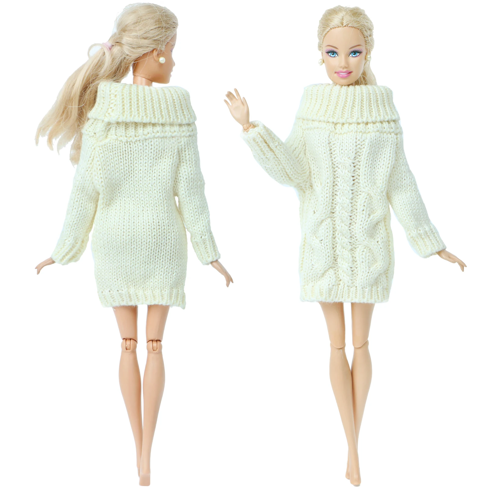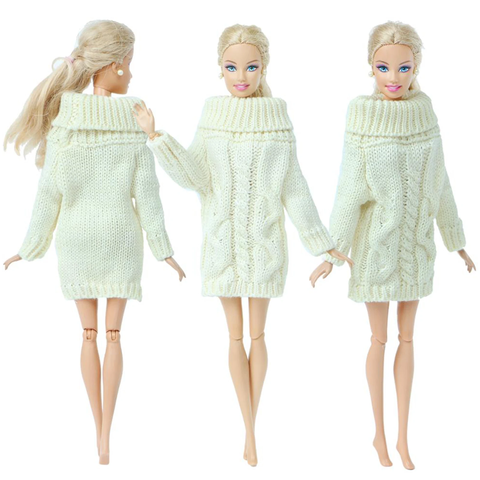 Высококачественный модный наряд для куклы Барби, элегантный женский свитер, белое платье, зимняя повседневная одежда, Одежда для куклы, аксессуары