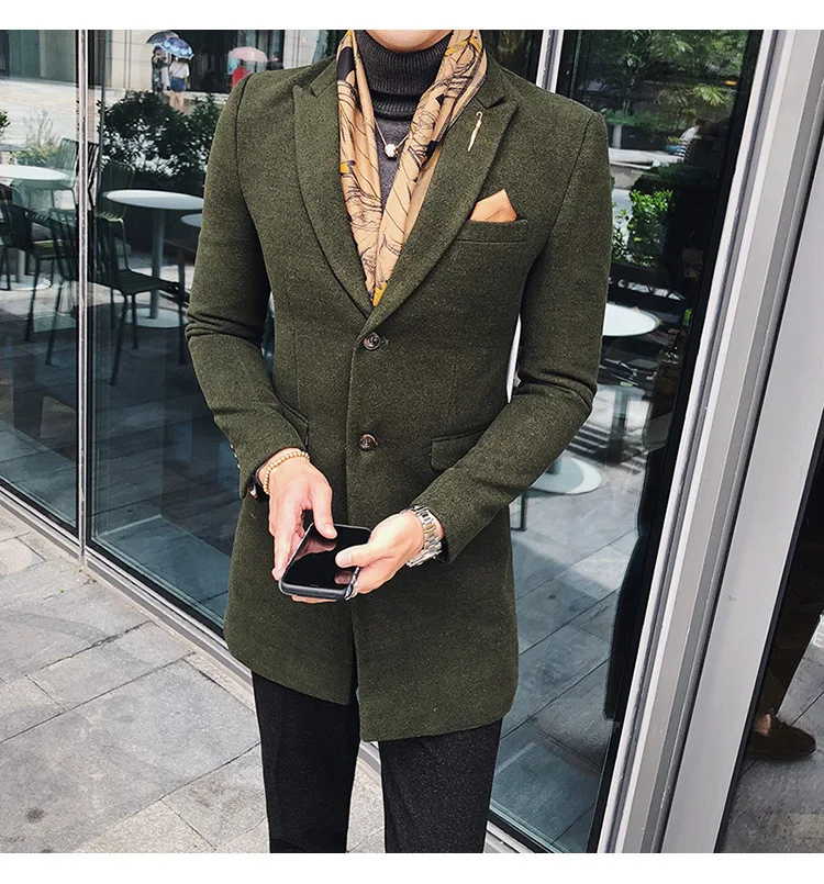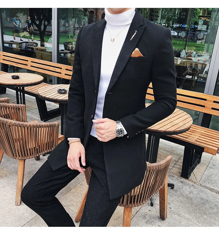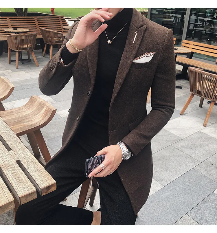 Новое зимнее шерстяное пальто, мужское длинное шерстяное пальто для...
