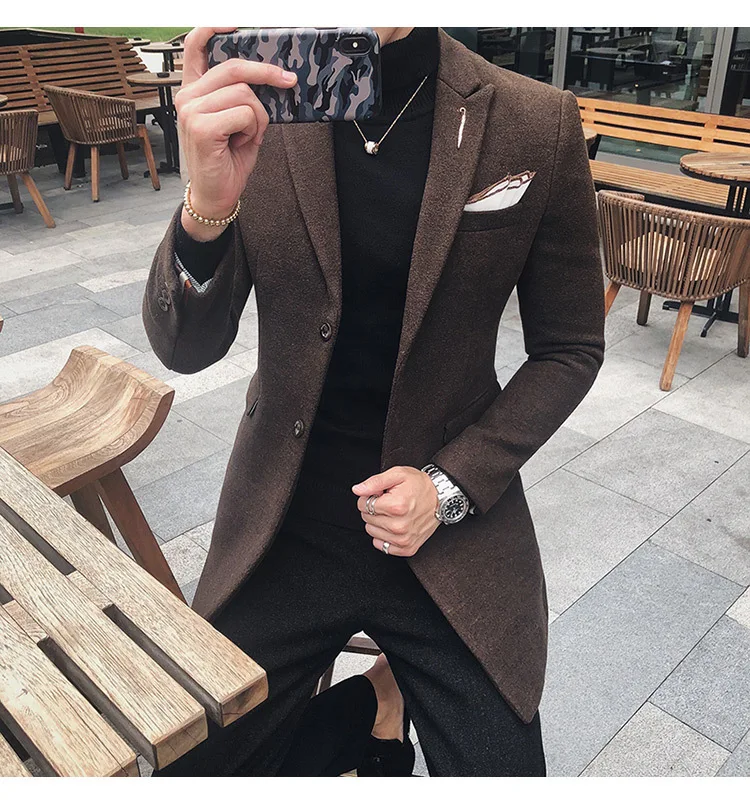 Новинка 2021, зимнее шерстяное пальто для мужчин, шерстяное пальто ...