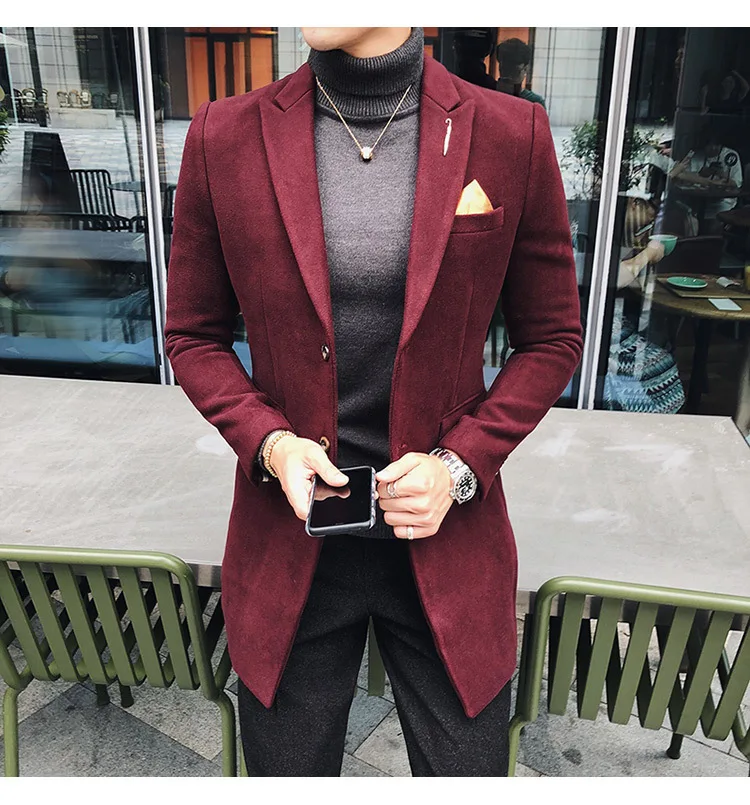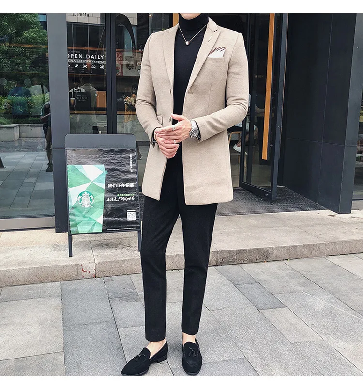 Новинка, мужской модный бутик, однотонные деловые повседневные брюки, шерстяное пальто, Мужской винтажный Тонкий шерстяной пиджак