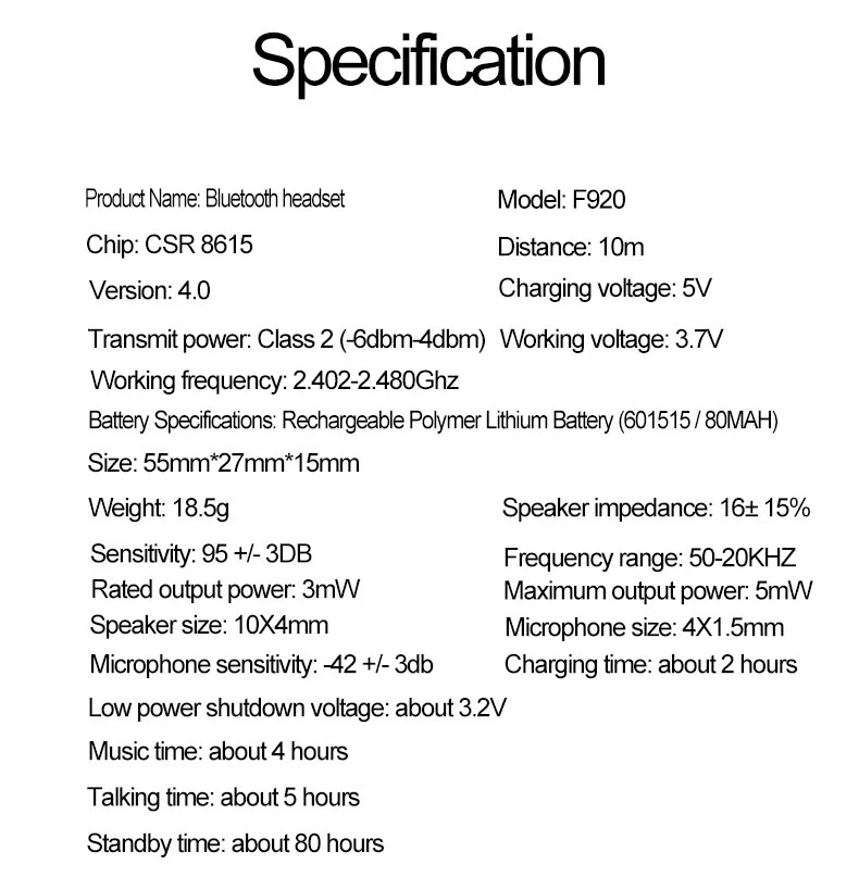 Беспроводные наушники FINEBLUE F920, Bluetooth-гарнитура, звонки, вибратор, прищепка для телефона, с микрофоном