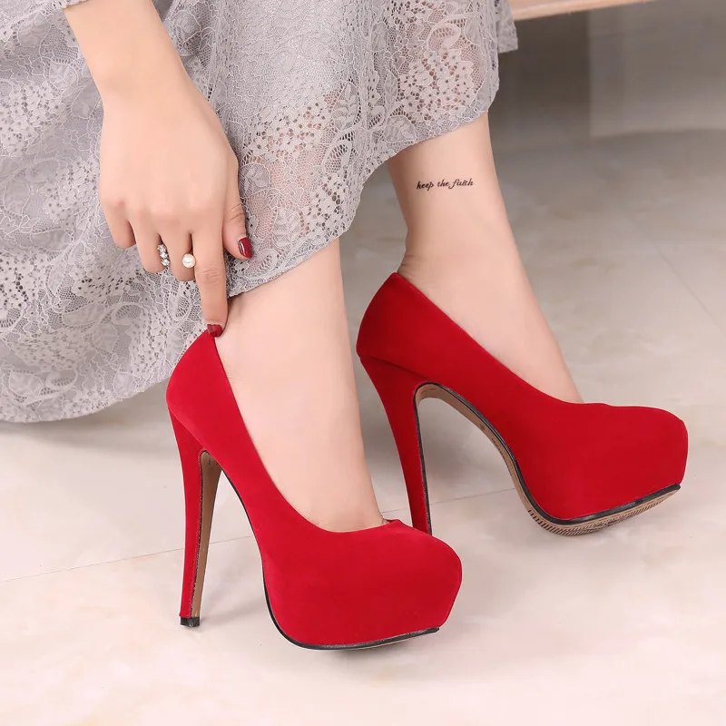 5,5 "Высокая обувь на платформе с красной бархатная обувь на каблук...