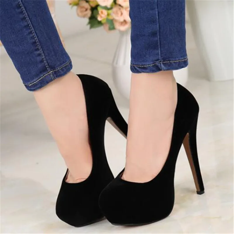 Женские туфли на очень высоком каблуке 14 см и платформе классическ...