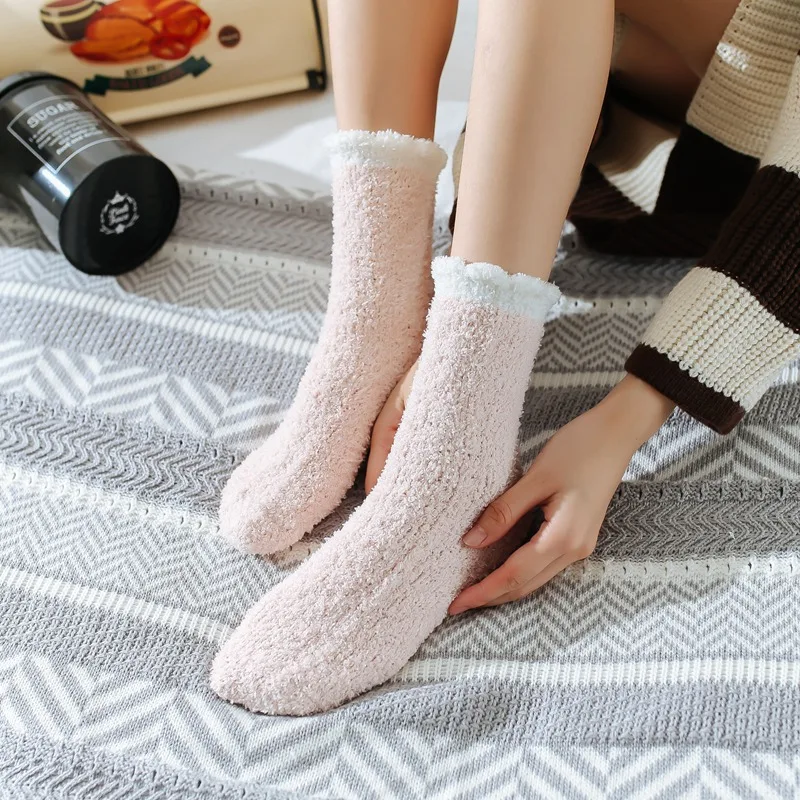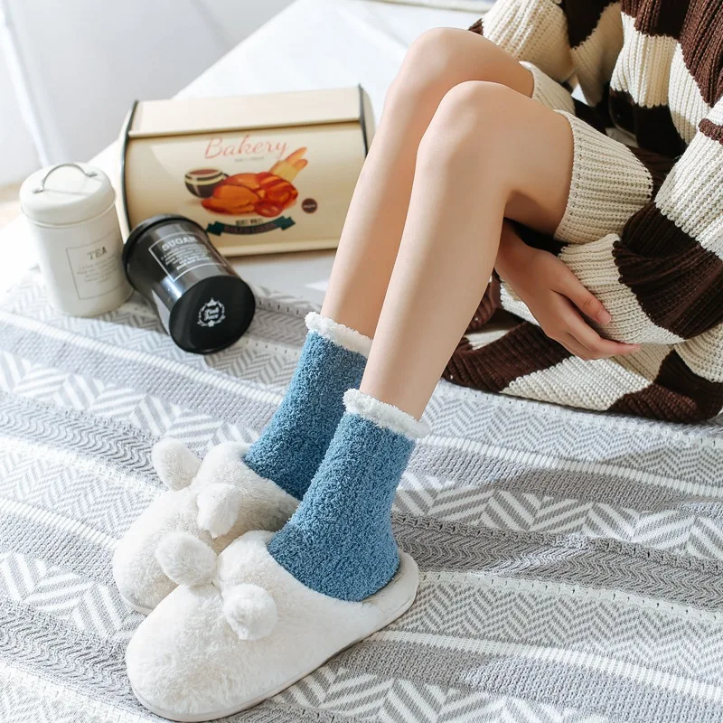 Осень Зима японский коралловый бархат пушистые носки женские теплые утолщенные Kawaii розовые носки для дам чистый цвет 400