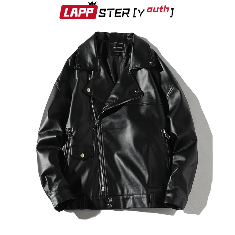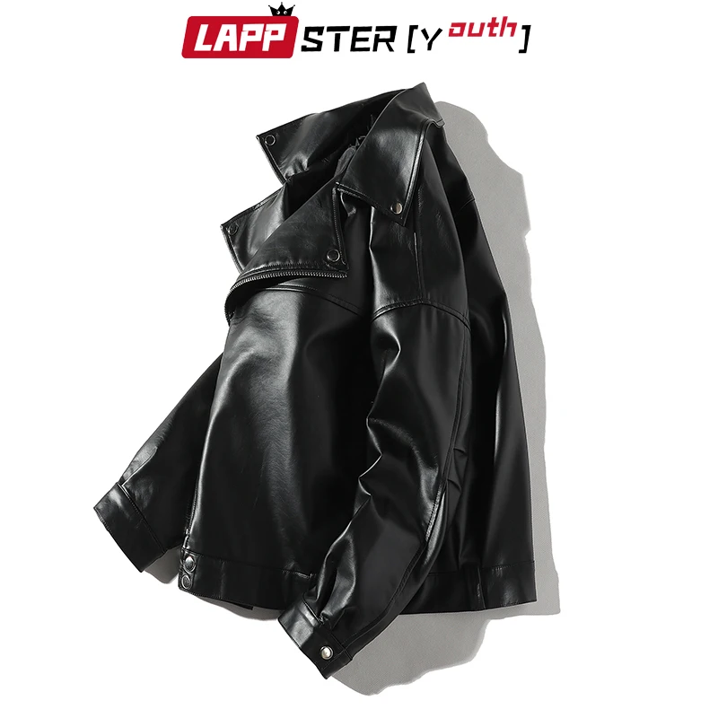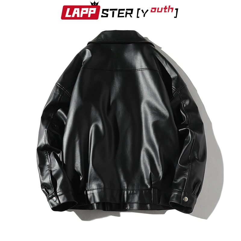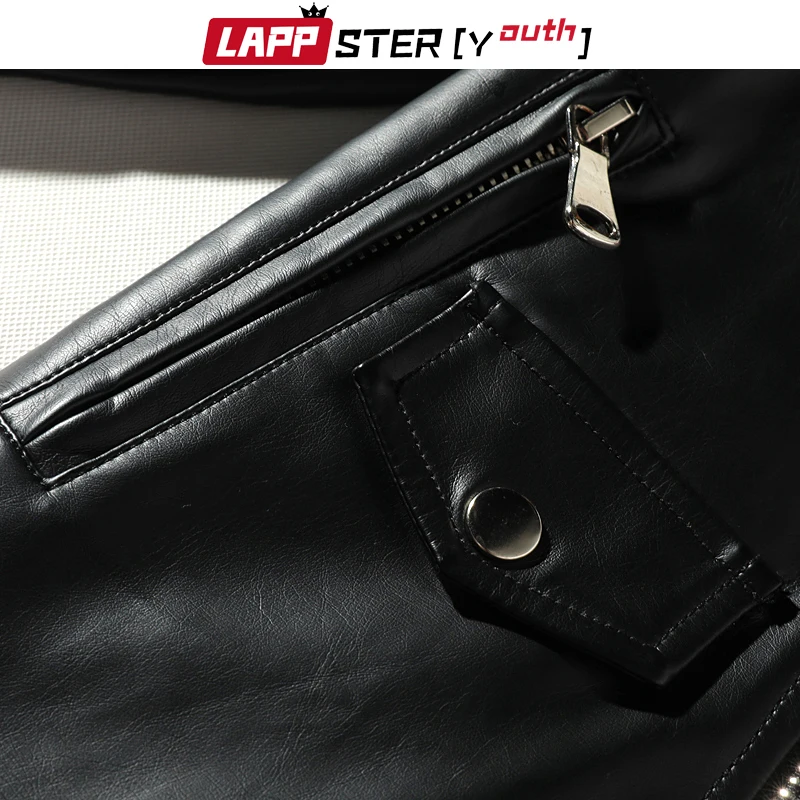 LAPPSTER-Молодежная мужская кожаная куртка, осень 2022, Harajukiu, мотоциклетная черная ветровка, Корейская байкерская куртка