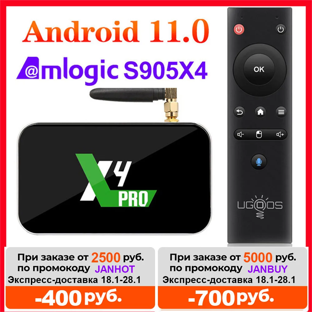 ТВ-приставка Ugoos X4 Pro, Android 11, Smart TV BOX S905X4 DDR4 4 ГБ 32 ГБ Wifi 1000M BT X3 Pro Plus S905X3 Android 9.0 ТВ-приставка