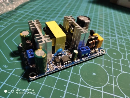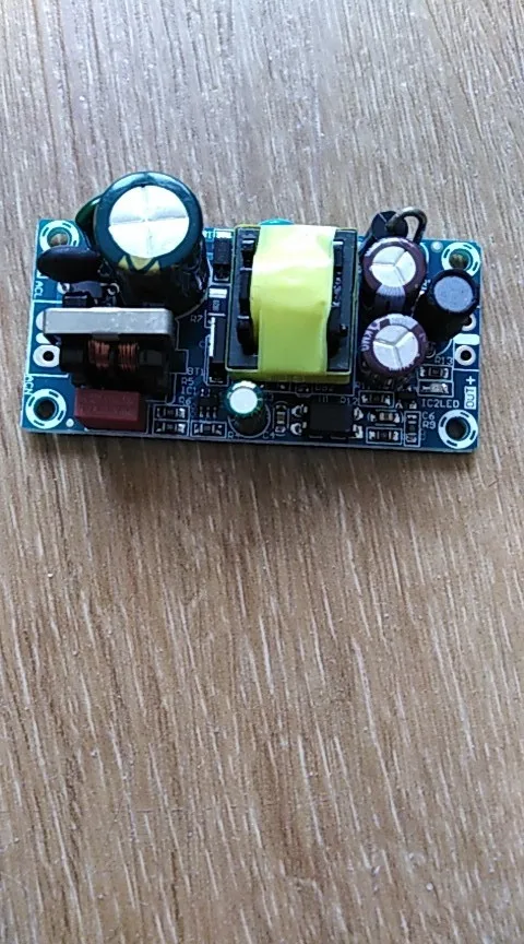 Нужен был долгосрочный дежурный источник. Понравилось фото. Получил совсем не то, что на фото. 5В 2.5А. на схеме ни единого радиатора. Ключ инвертора смд, но распаян стоя на плате. Включил в схему дежурным источником, тестирую. Продавец отправил быстро, дошло быстро.