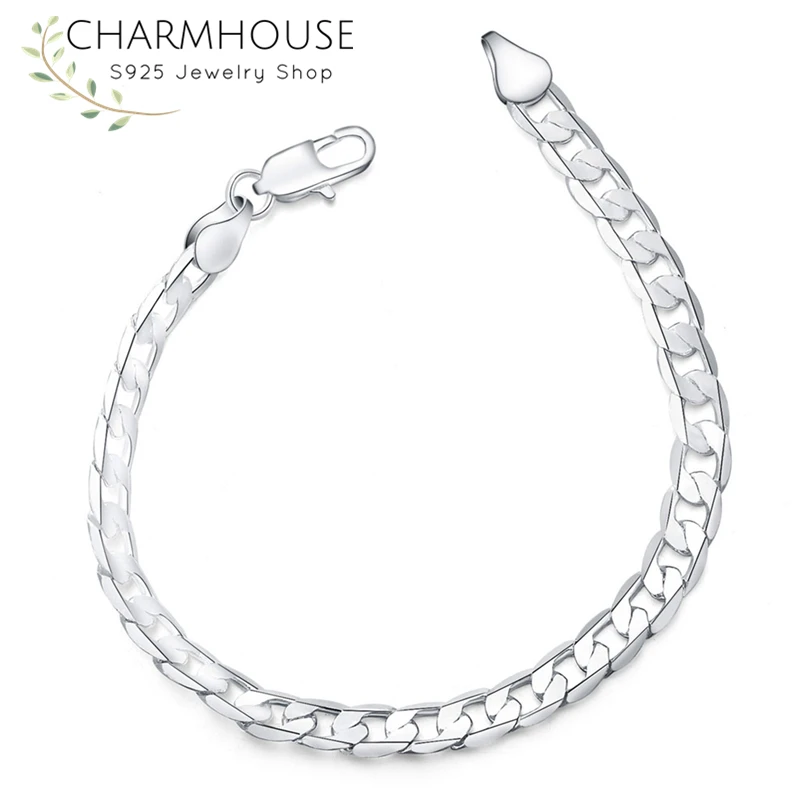 Браслеты Charmhouse из чистого серебра 925 пробы для мужчин, звеньевая цепочка 8 мм, браслет на запястье, мужские ювелирные аксессуары, бижутерия