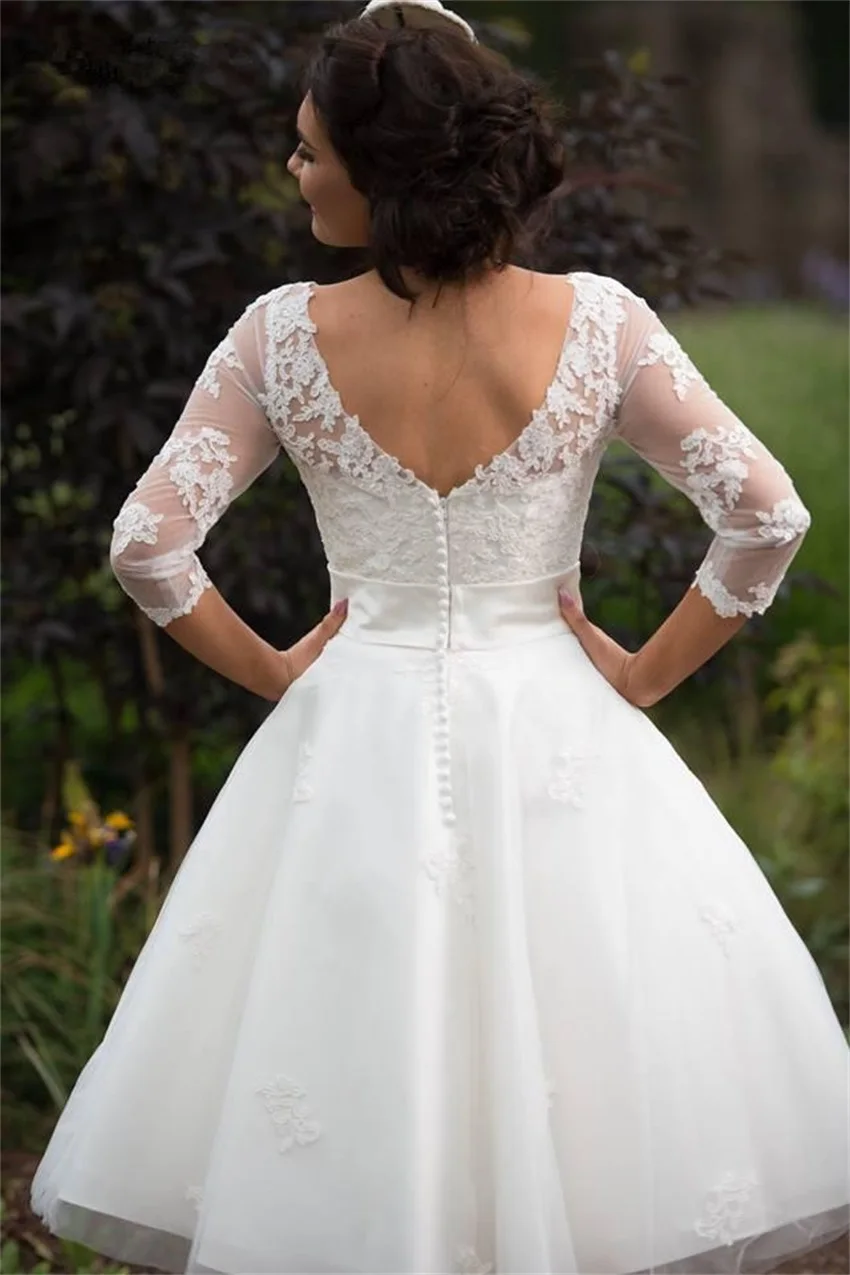 NUOXIFANG сексуальное короткое свадебное платье с открытой спиной и коротким рукавом Свадебные платья кружевные свадебные платья до колена Vestido de Noiva