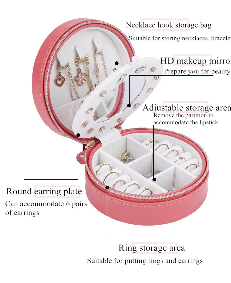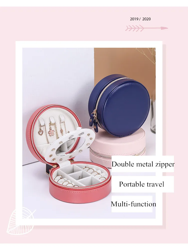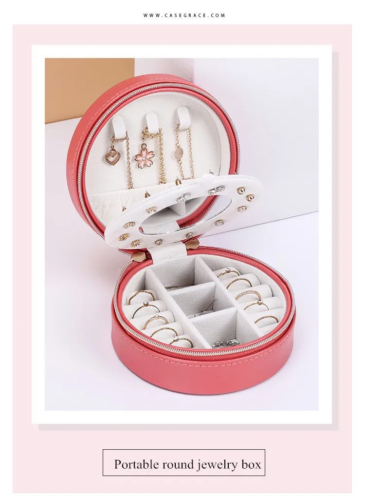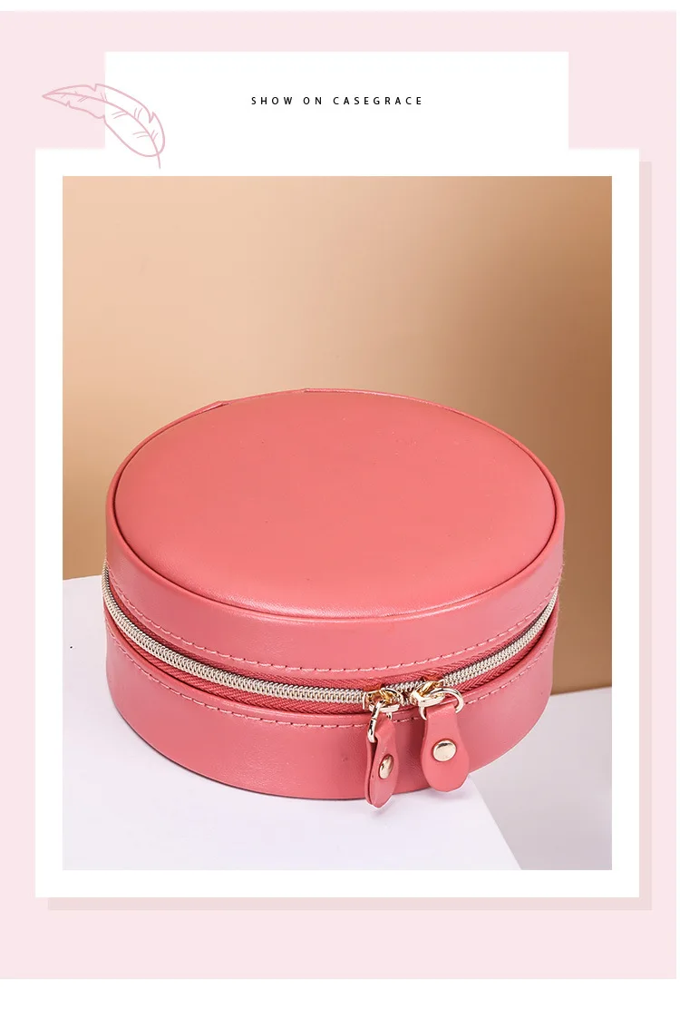 Круглая портативная шкатулка для ювелирных изделий из искусственной...