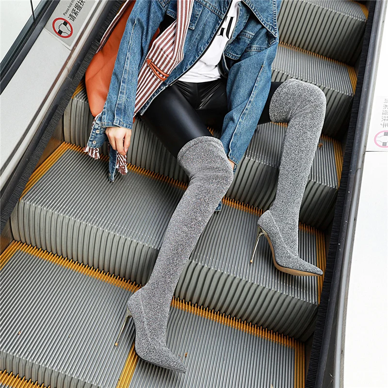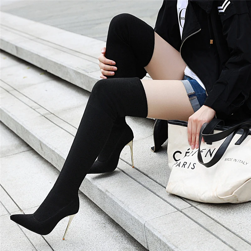 Женские ботфорты-чулки на высоком каблуке 10 см