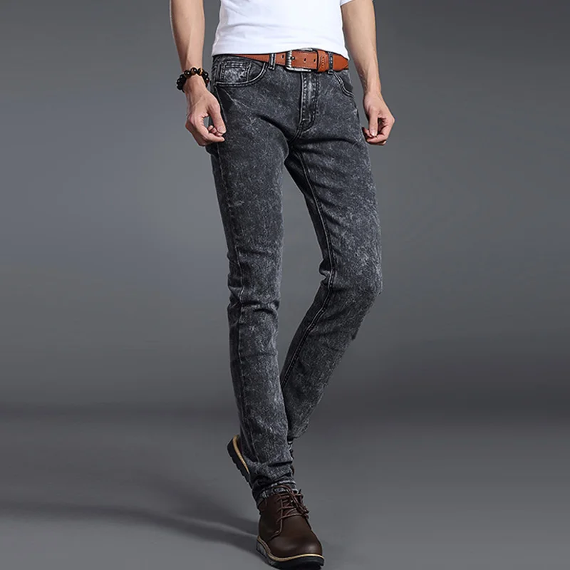 2021 мужские темно-серые зауженные джинсы Небесно-Голубой Деним Джи...