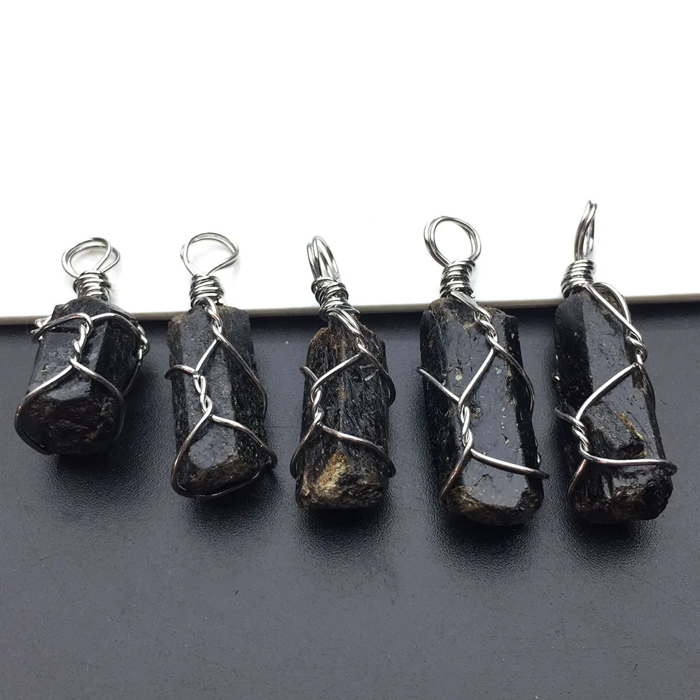 Натуральный черный турмалин Натуральный Камень Подвески бусины рейки кулон нунатак НЕОБРАБОТАННАЯ чакра исцеляющая энергия камень проволока обернутые ювелирные изделия