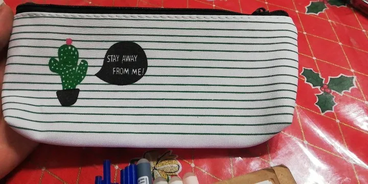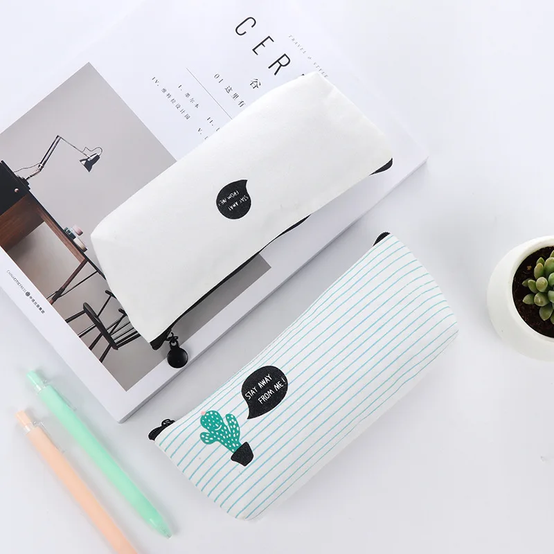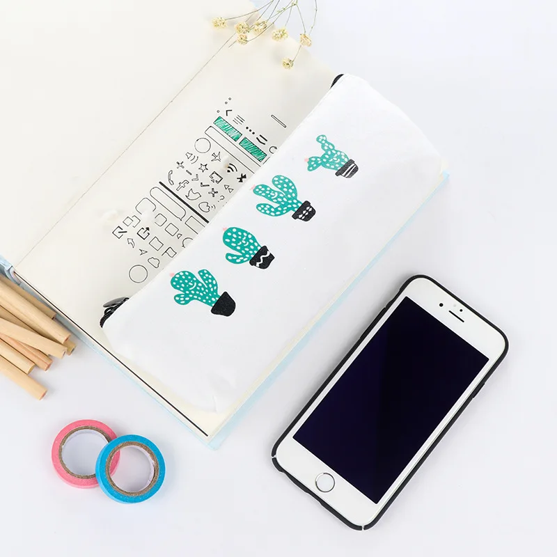 Пенал холщовый большой вместимости с зеленым КАКТУСОМ, школьные принадлежности, рекламные подарки, Канцтовары