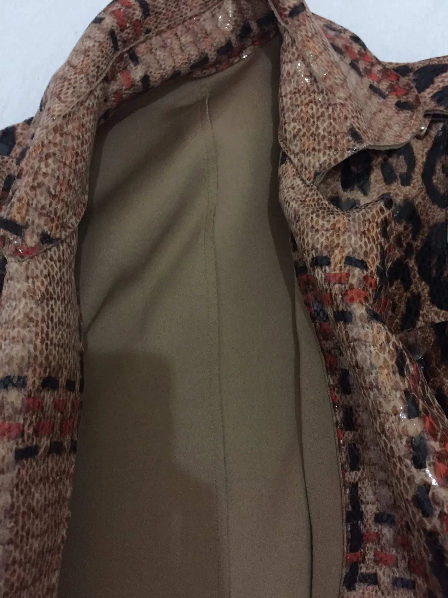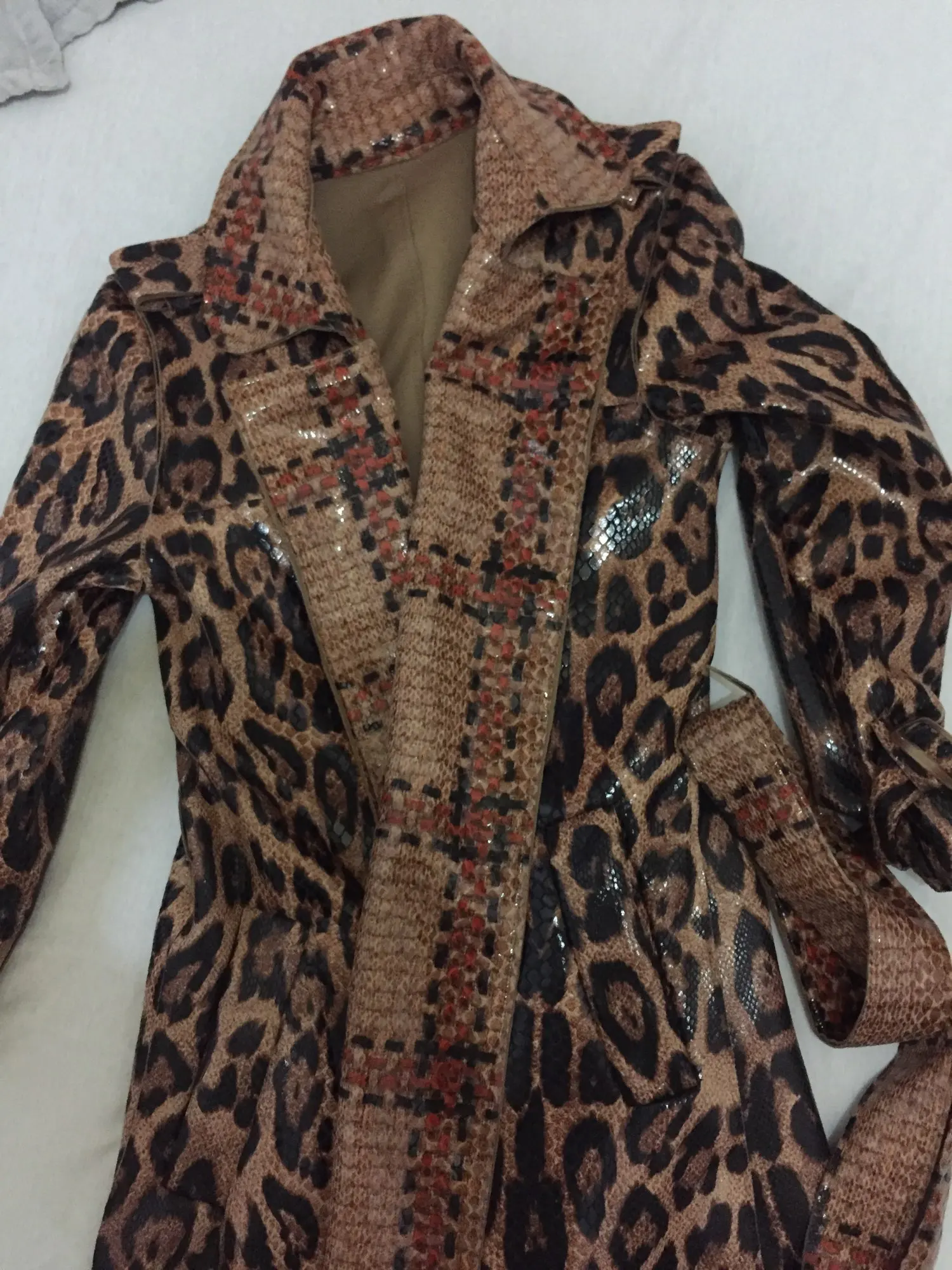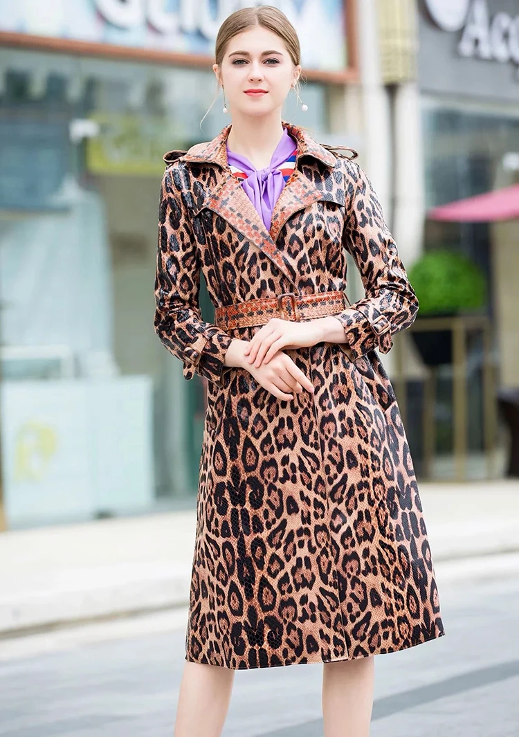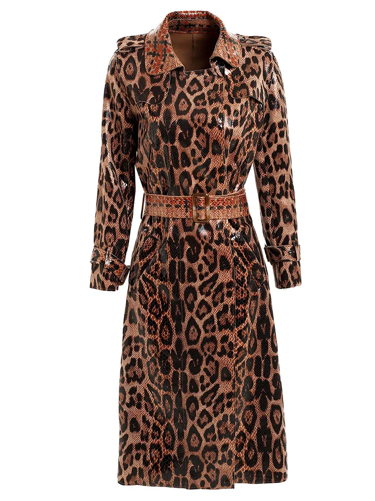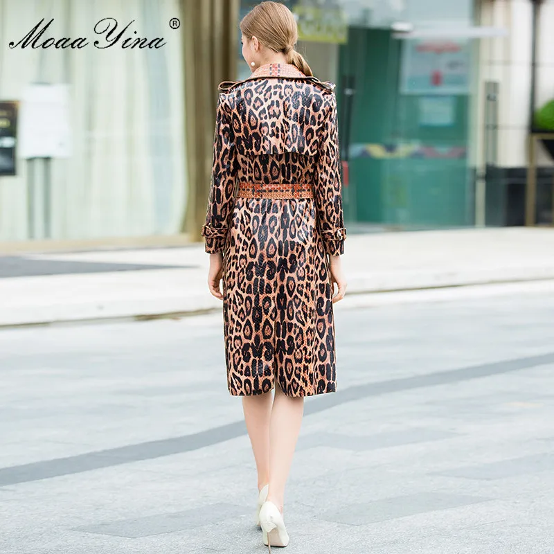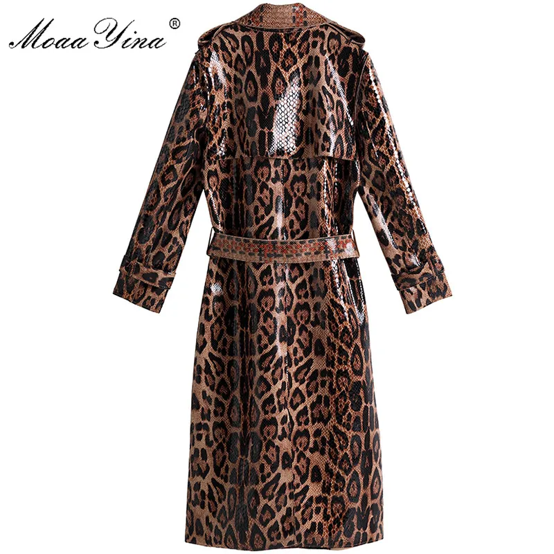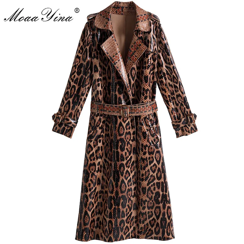 Модная ветровка MoaaYina, Женское пальто на осень и зиму с длинным рукавом и принтом змеиной кожи, теплое пальто на шнуровке